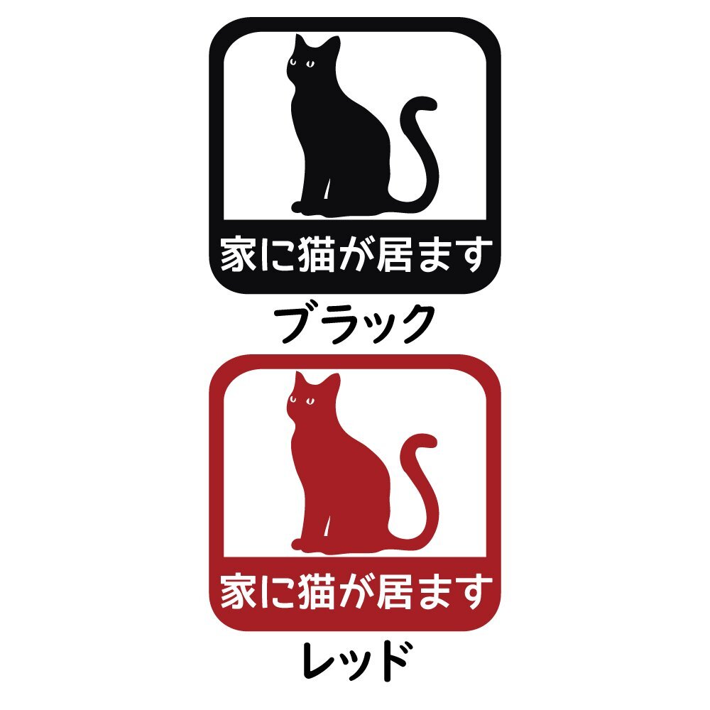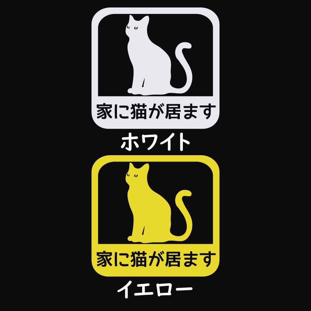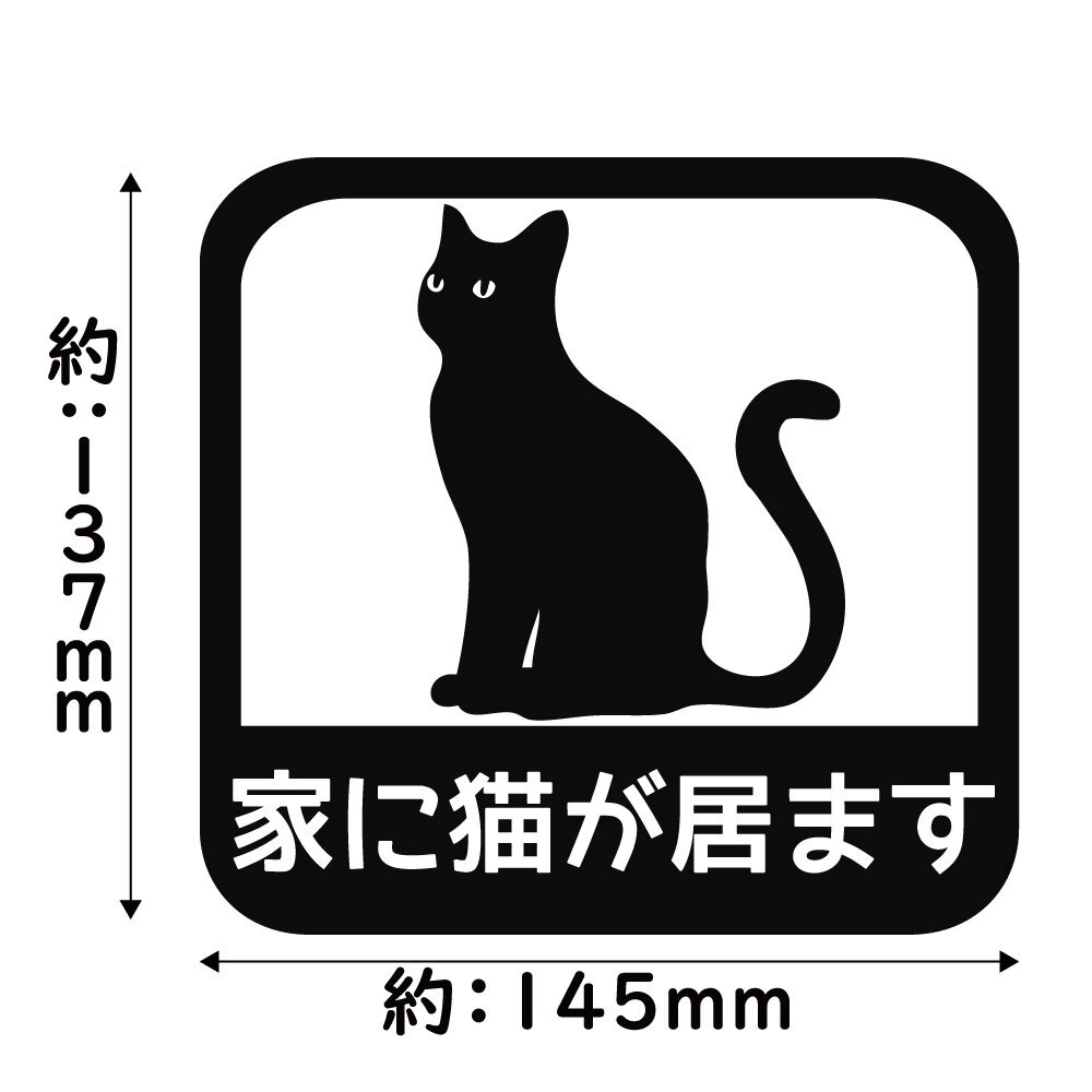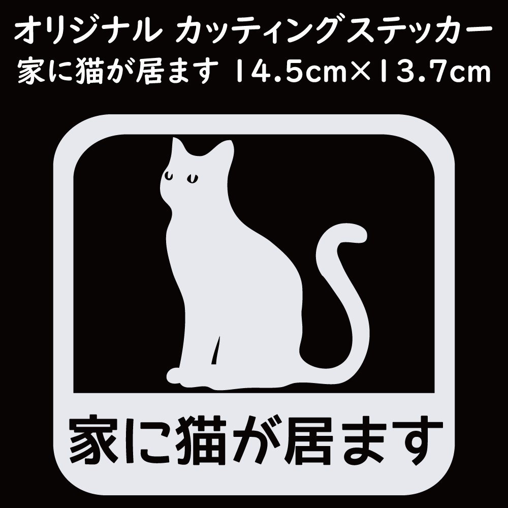 ステッカー 【 家に猫が居ます A ホワイト 縦13.7cm×横14.5cm 】 ねこ ネコ お一人暮らしで万一の事故でも安心 にゃんこ 猫好き