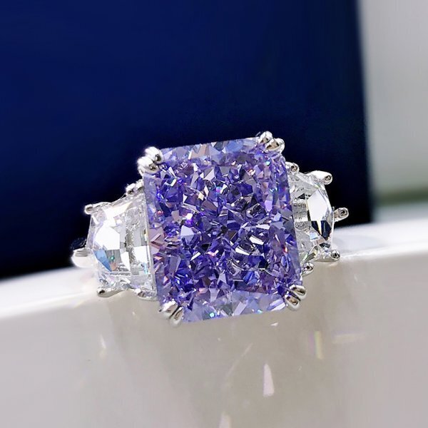 チャーム-女性用925スターリングシルバーアメジストリング、大きなジェムストーンで美しいジュエリー、ギフトに最適、10x12mm