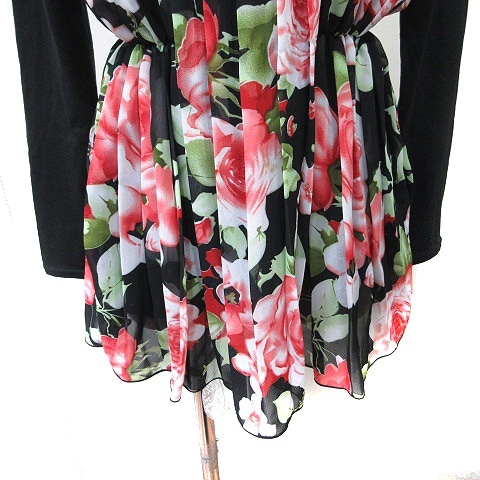 チャームアディクション Charm Addiction チュニック カットソー 切替 シフォン 花柄 M マルチカラー /YI レディース
