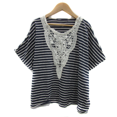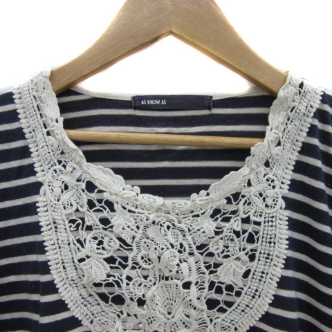 アズノウアズ as know as カットソー 半袖 ラウンドネック ボーダー柄 レース オーバーサイズ F 紺 ネイビー 白 ホワイト レディース