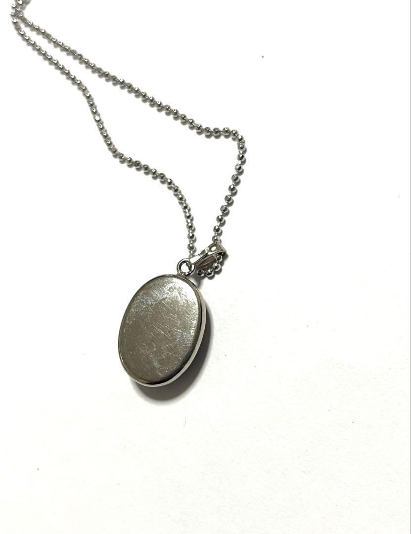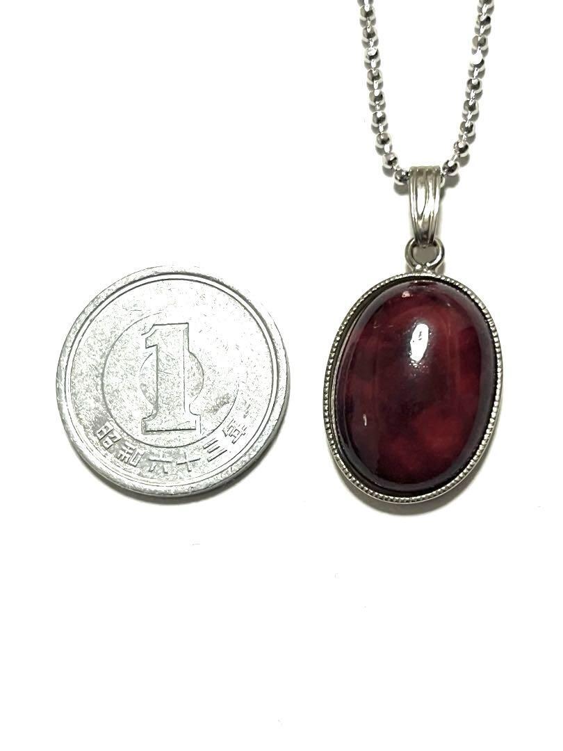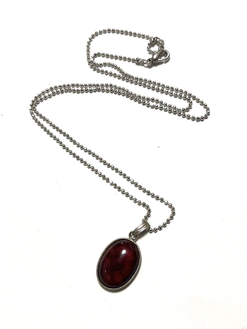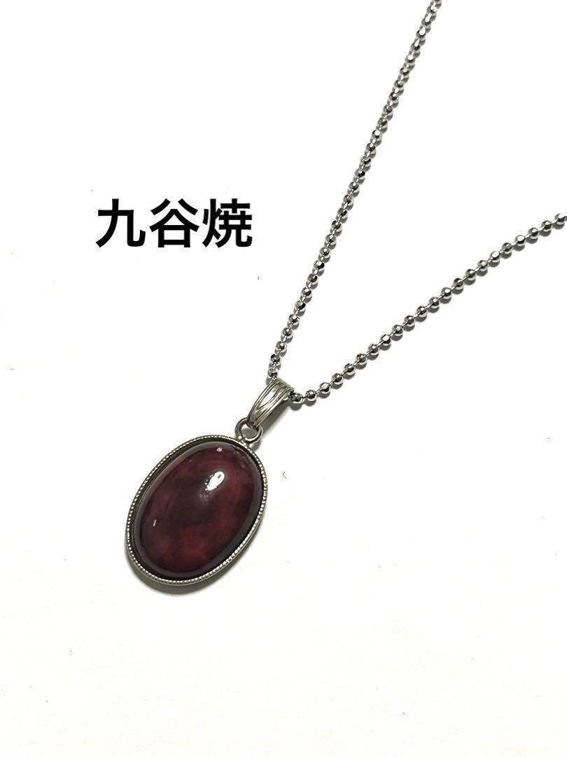 赤いオーバル九谷焼のネックレス、ボールチェーン付き。