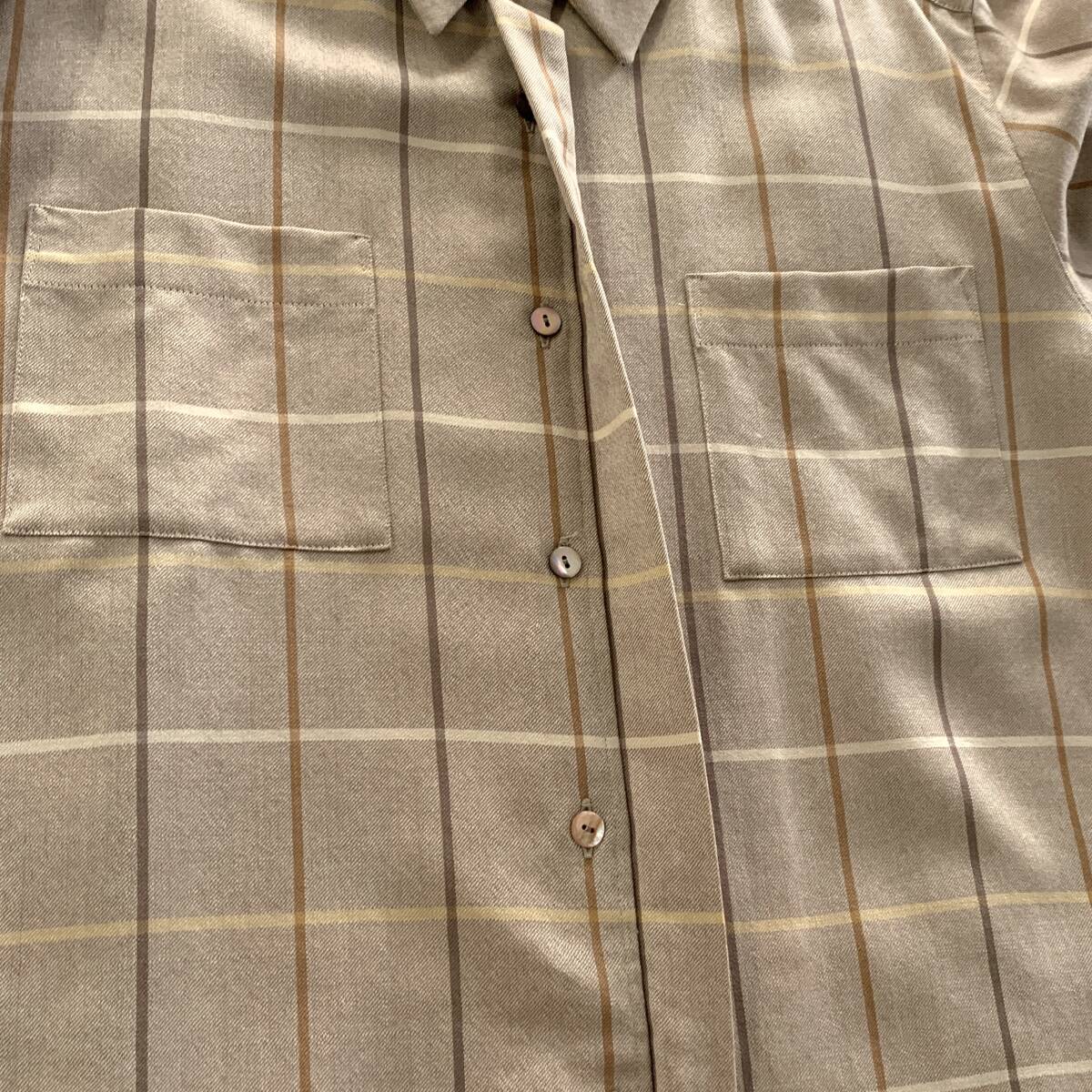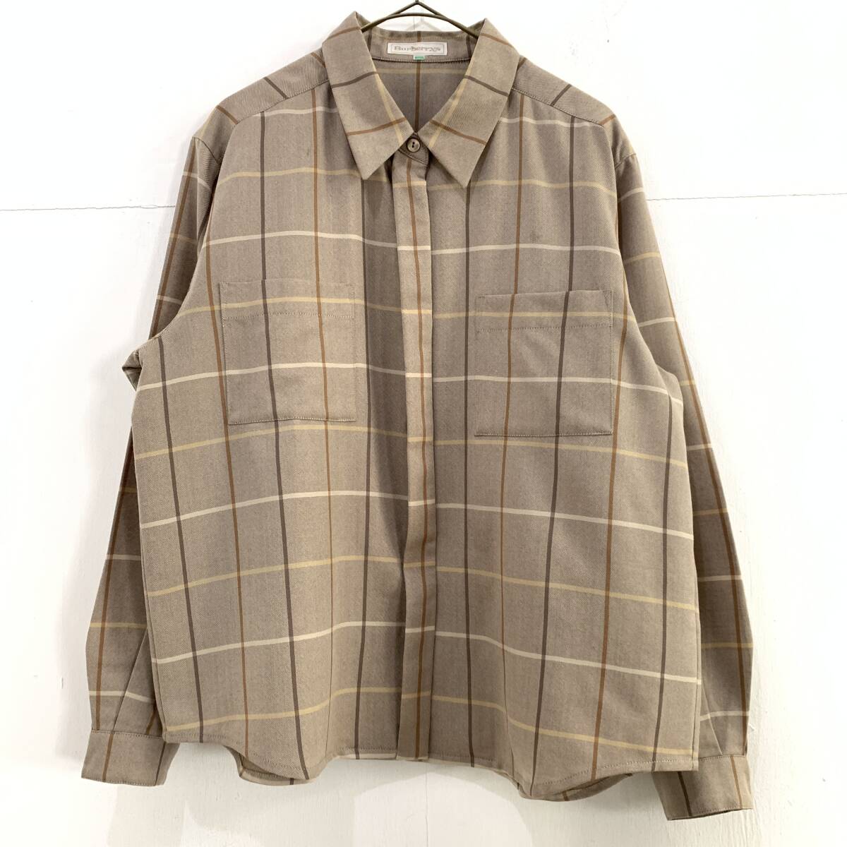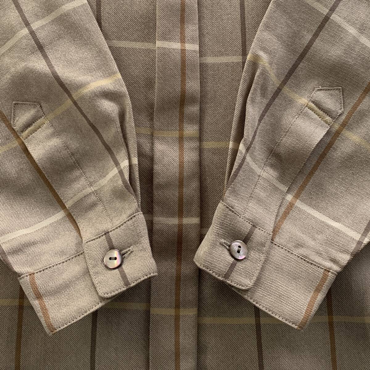 ☆Burberrys オールドバーバリー Vintage 毛100% チェック柄 長袖シャツ ブラウス 比翼デザイン グレージュ系 9R【レターパックプラス郵送可】Cの出品です。