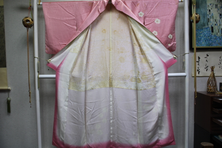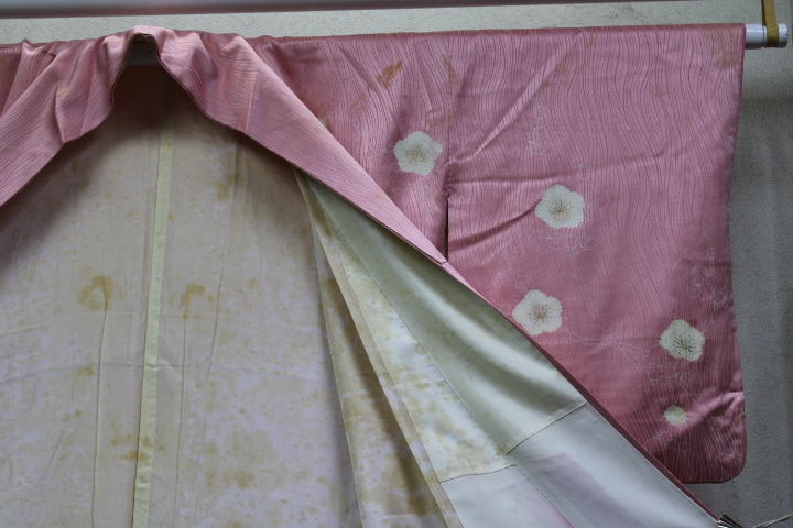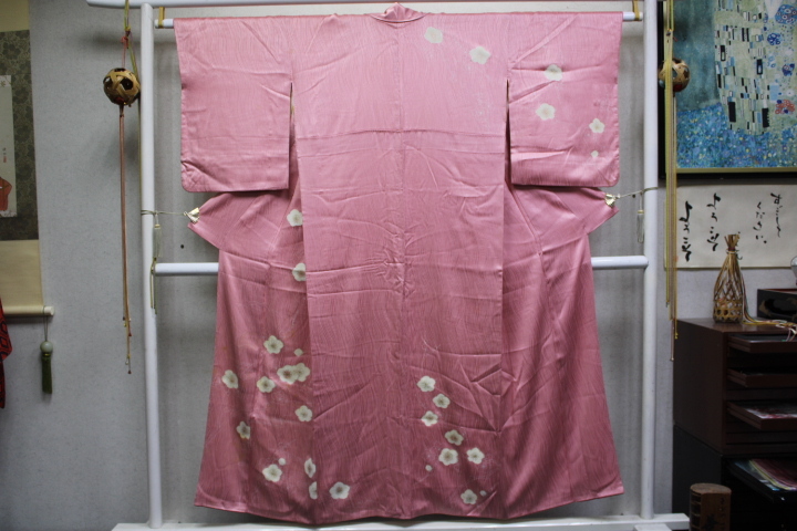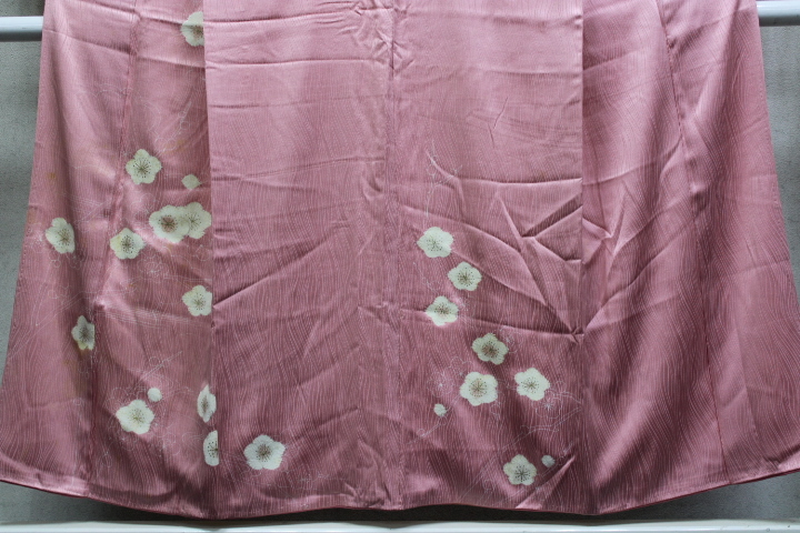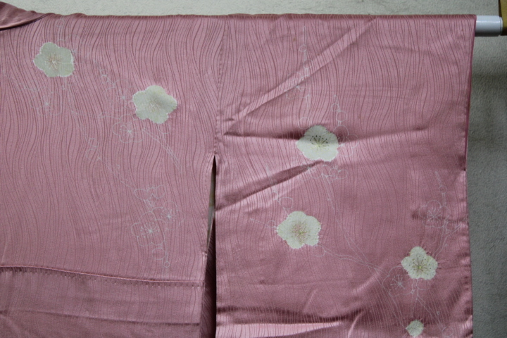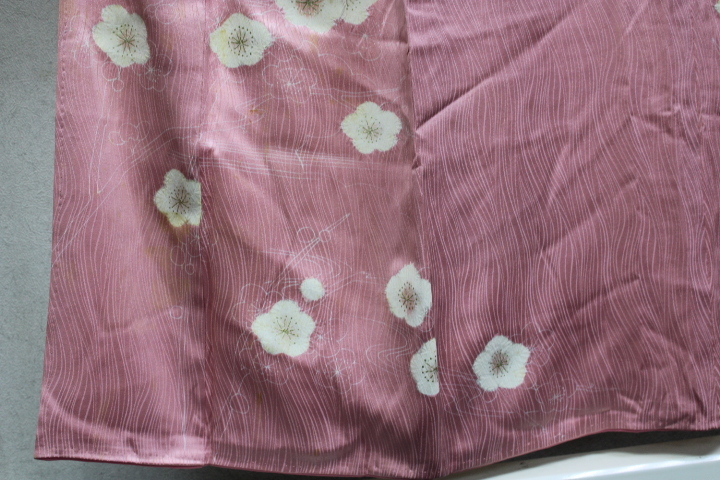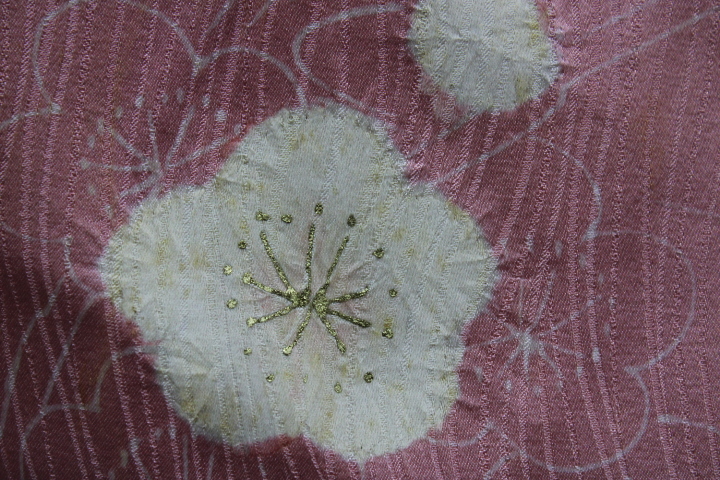 高級正絹綸緞子生地 艶のある柔らかい生地に手絞り梅柄絞り