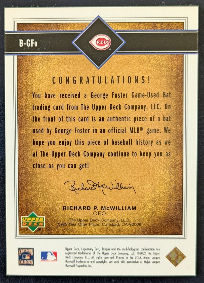 【2002 UPPER DECK】B-GFo シンシナティ・レッズ ジョージ・フォスター George Foster game used bat【実使用バットカード】