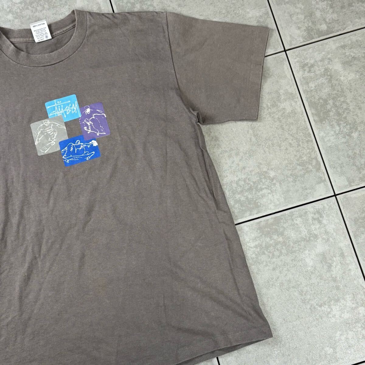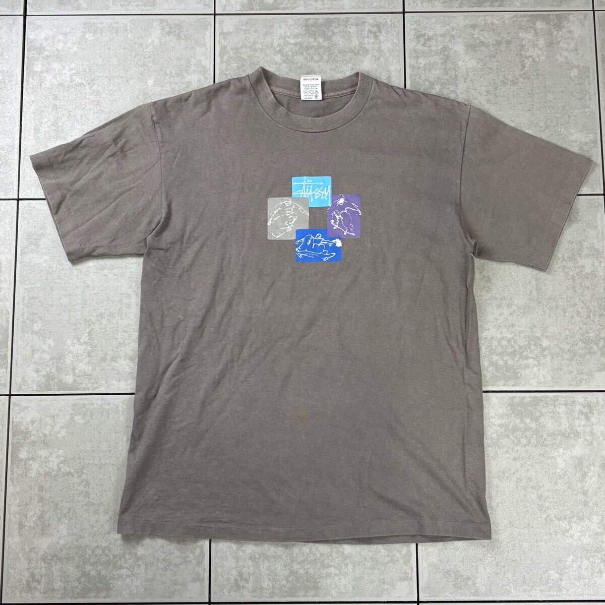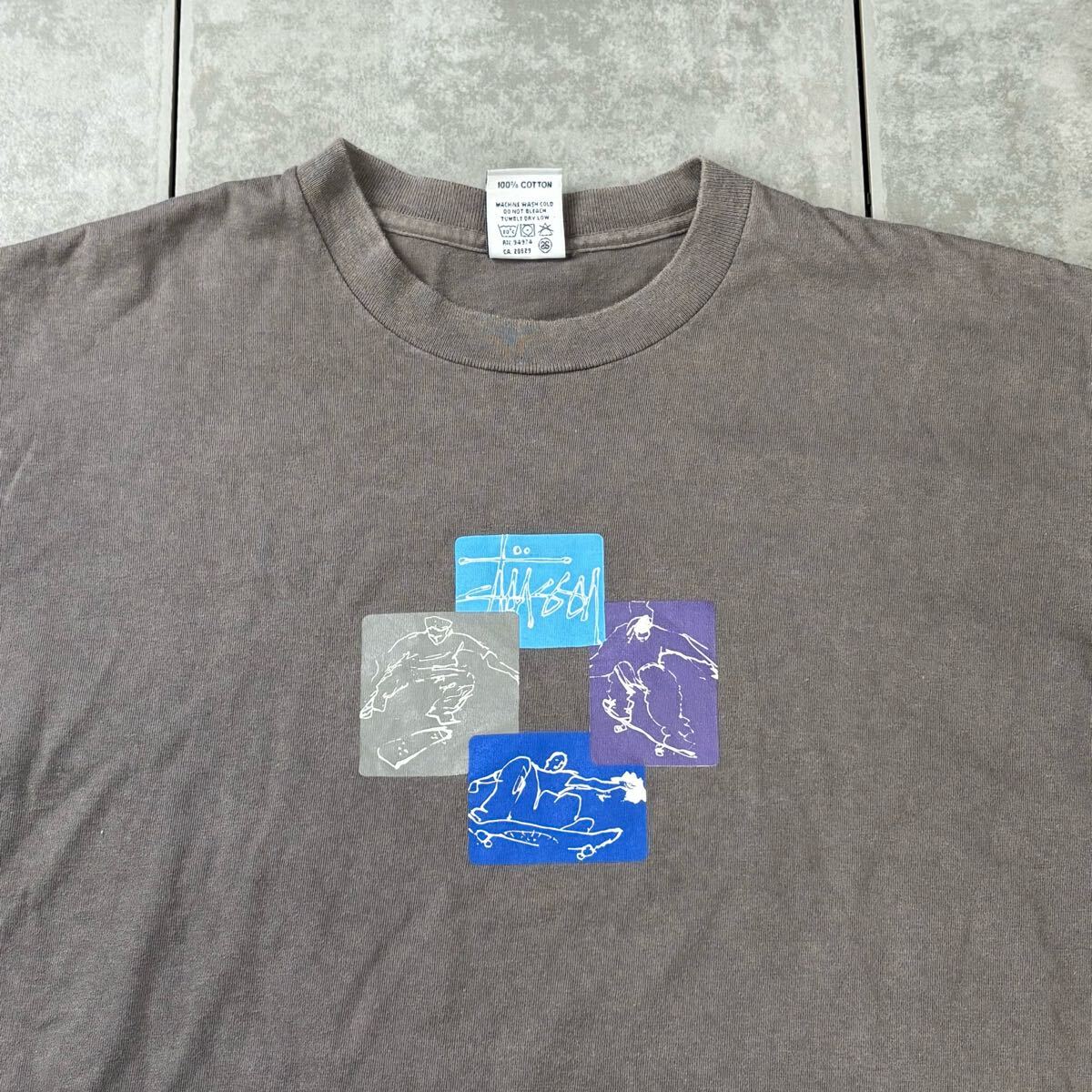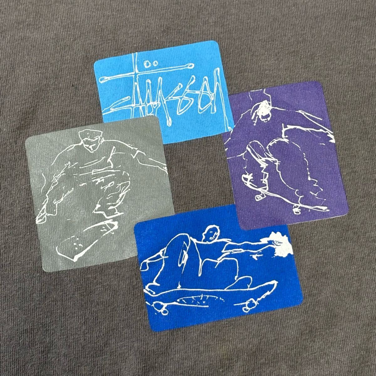 old stussyの写真をイラスト化したプリントとロゴプリントがフロントに入ったシンプルで着やすく、いい雰囲気でフェードしたTシャツです。