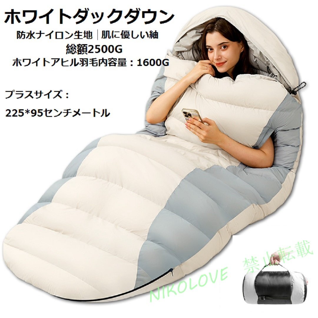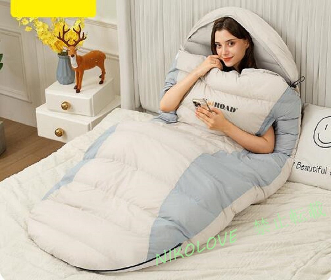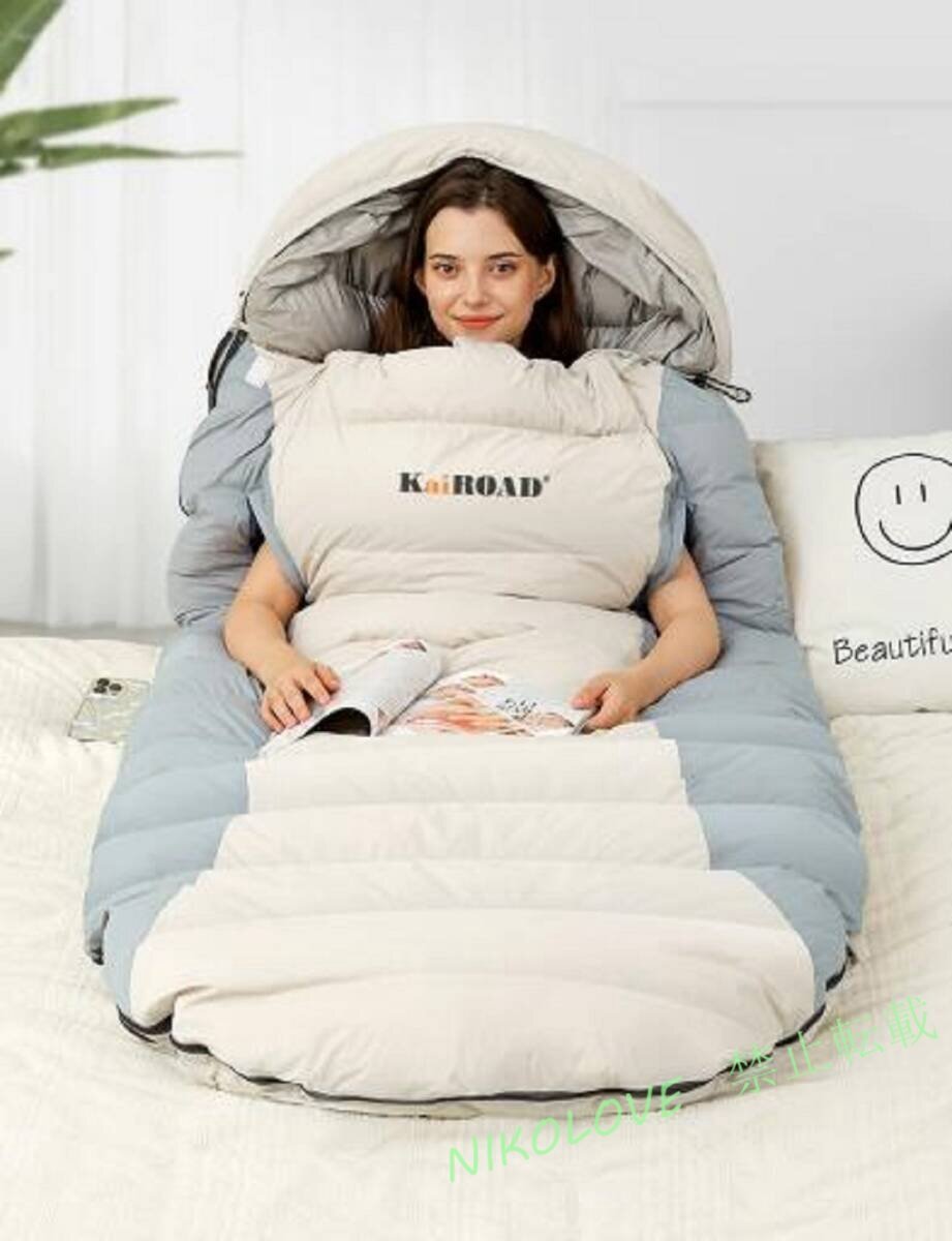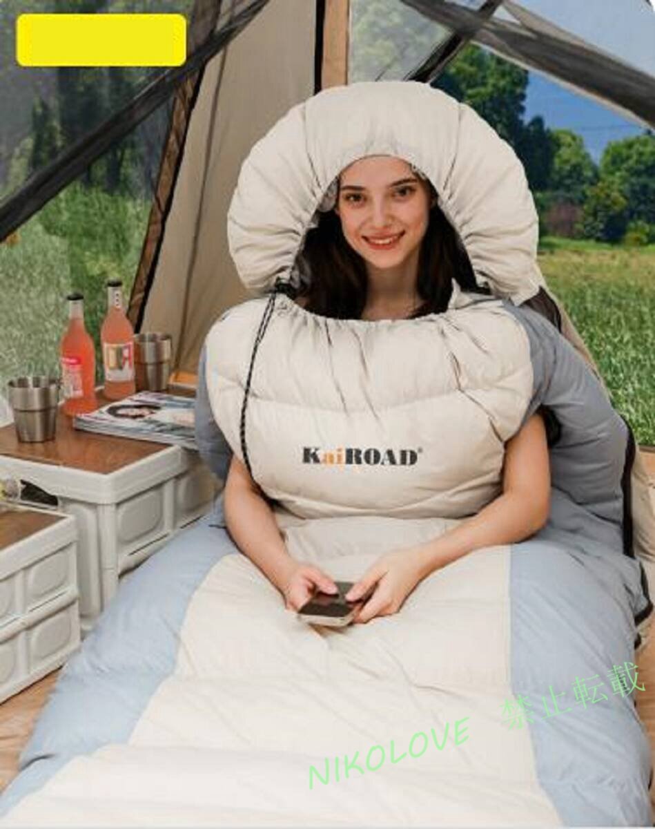 ■キャンプアウトドアウォームダウン寝袋、ユニークなデザイン、腕と足を伸ばすことができます。
