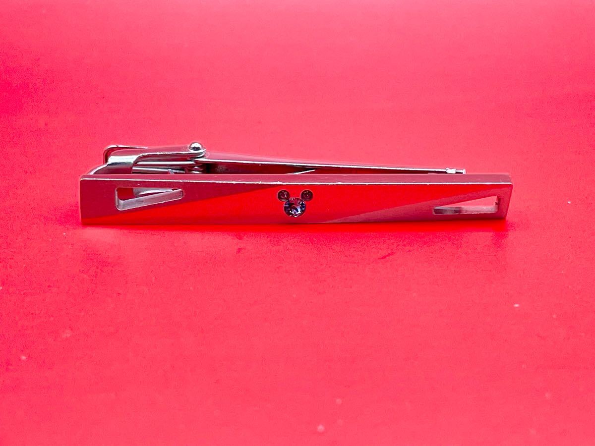 ミッキーマウスのシルエットをかたどった青い宝石が埋め込まれています。