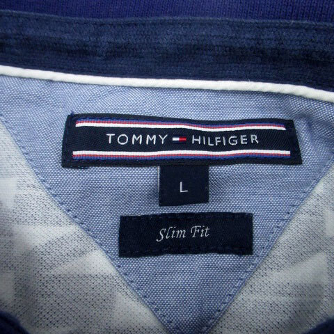 トミーヒルフィガー TOMMY HILFIGER ポロシャツ ポロカラー 半袖 総柄 L 紺 ネイビー オフホワイト /HO24 メンズ