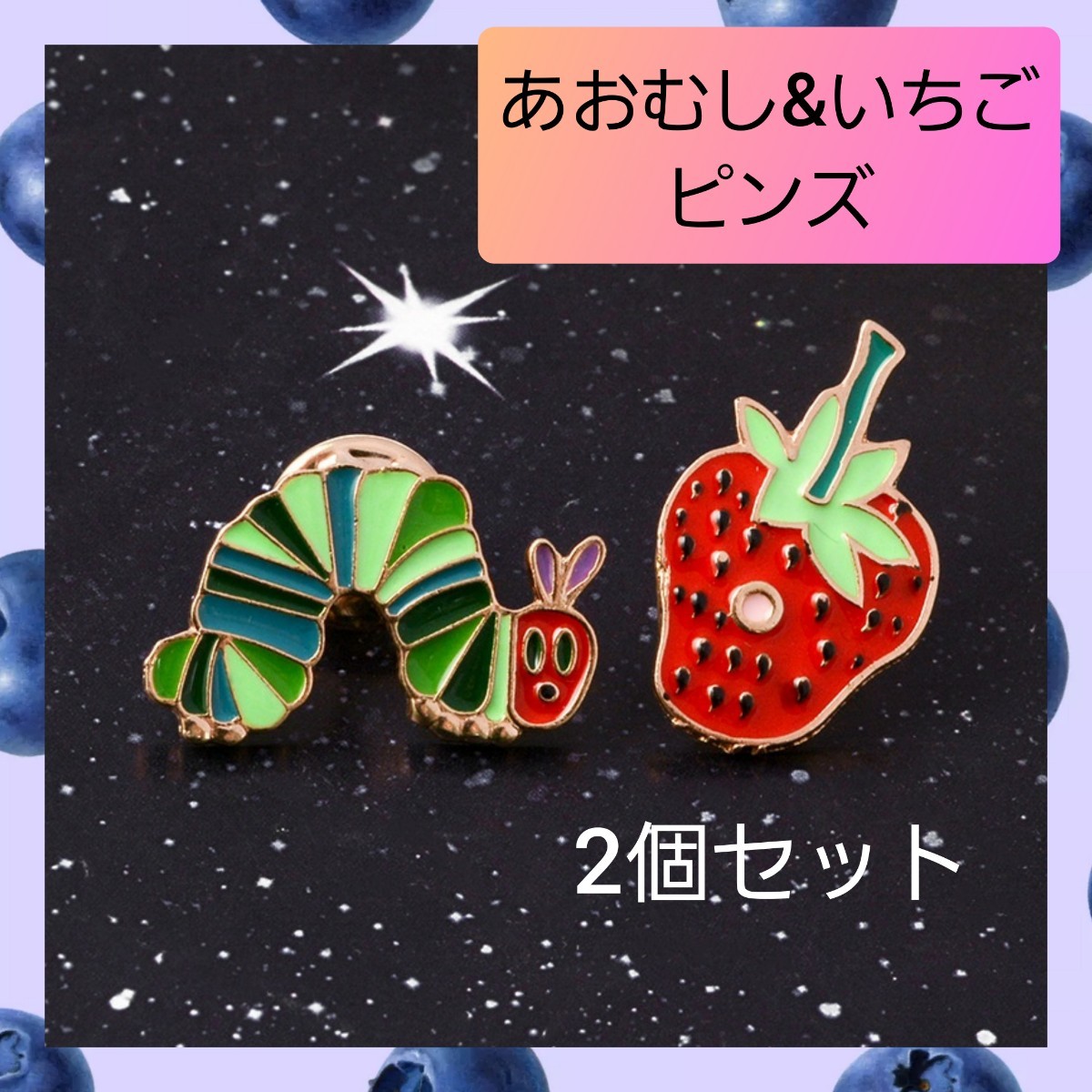 #ピンズ #ピンバッジ #ピンバッチ #ブローチ #ペアアクセ #あおむし #いちご #絵本