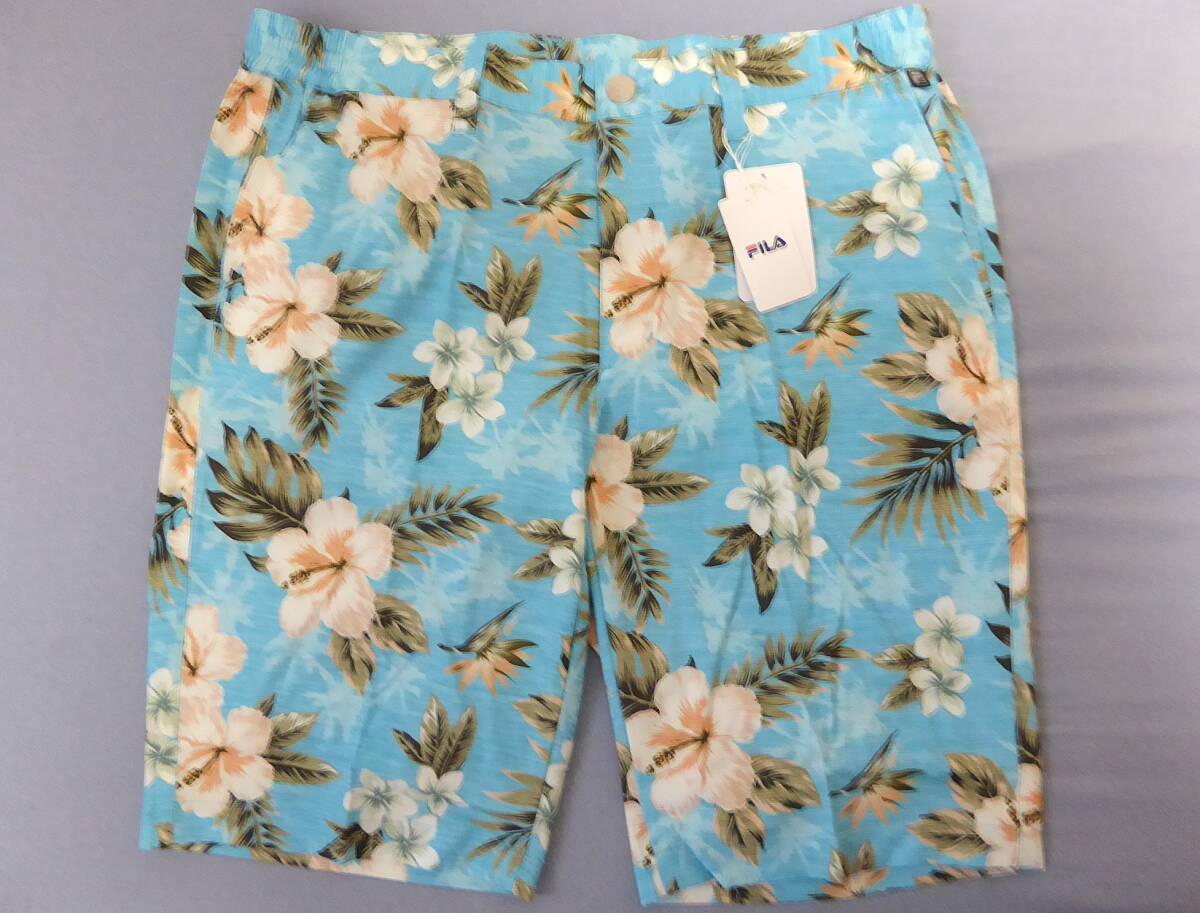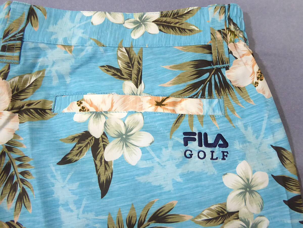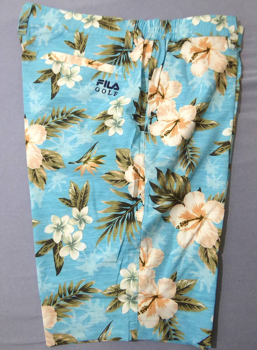 FILA GOLF フィラ ゴルフ [742327-G] ロゴ刺繍 アロハ ハイビスカス ボタニカル柄 ストレッチ ハーフパンツ LL ブルー