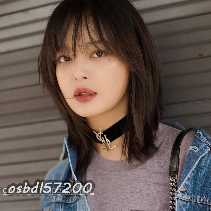 稀少美品★フルウィッグ 人毛 ウィッグ かつら セミロングストレート ショート