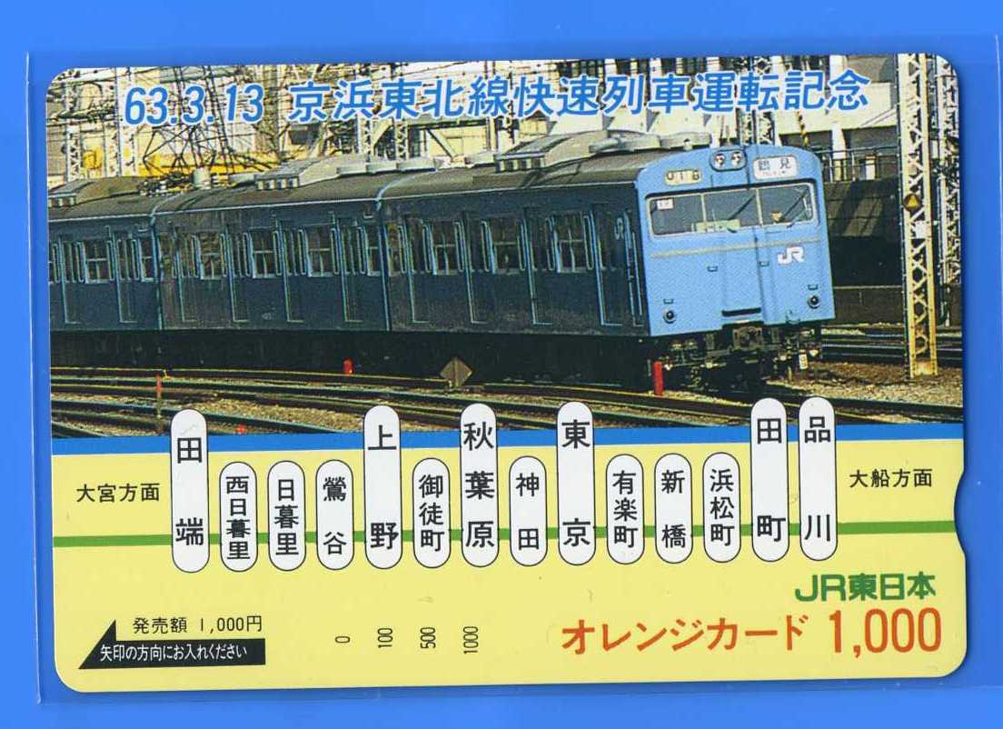 □オレンジカード1000□103系京浜東北線快速列車運転記念 JR東日本オレカ