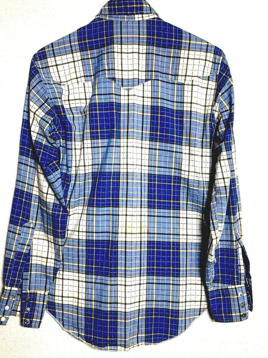 ウエスタンヨークをフラップにした変則ポケット、ブロックチェックにドットが入る格子チェックの変わり織が特徴的な50sらしい一着です。