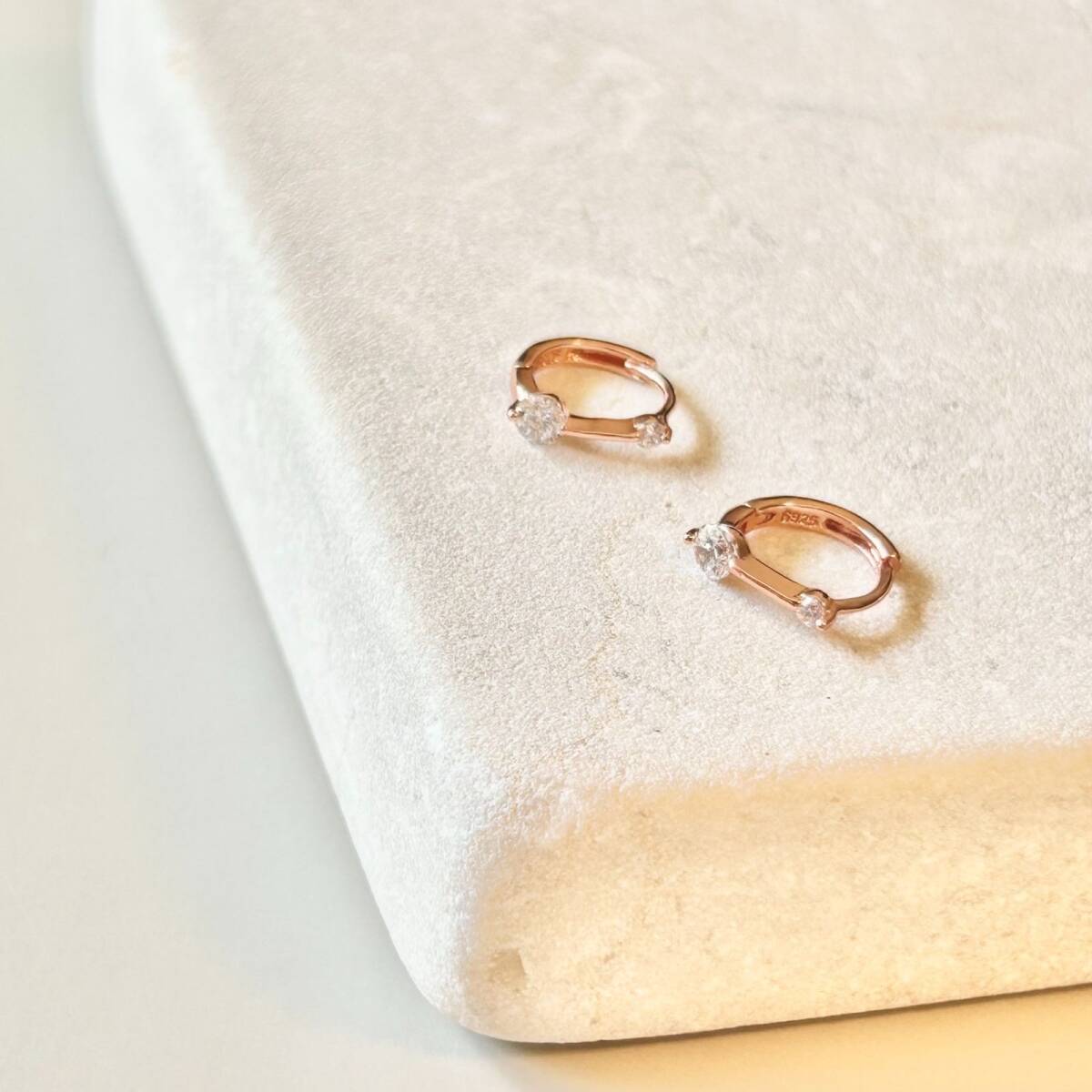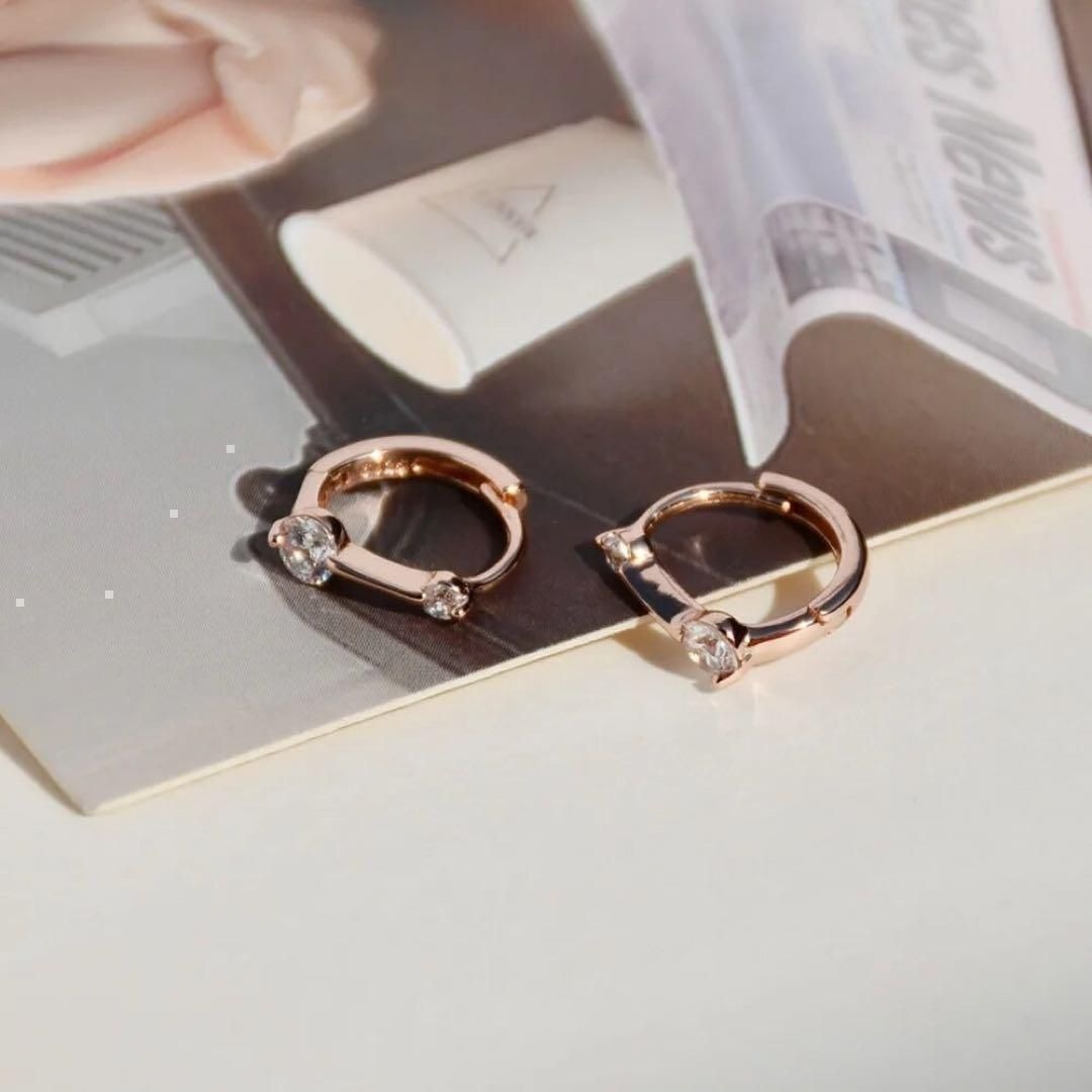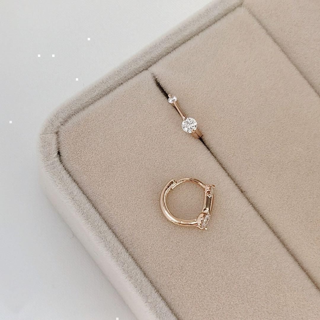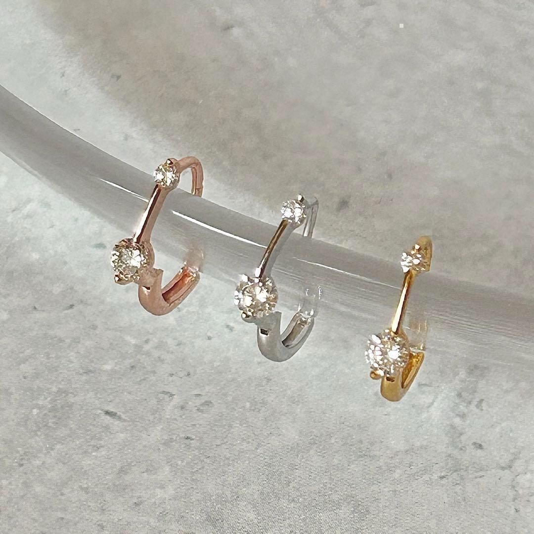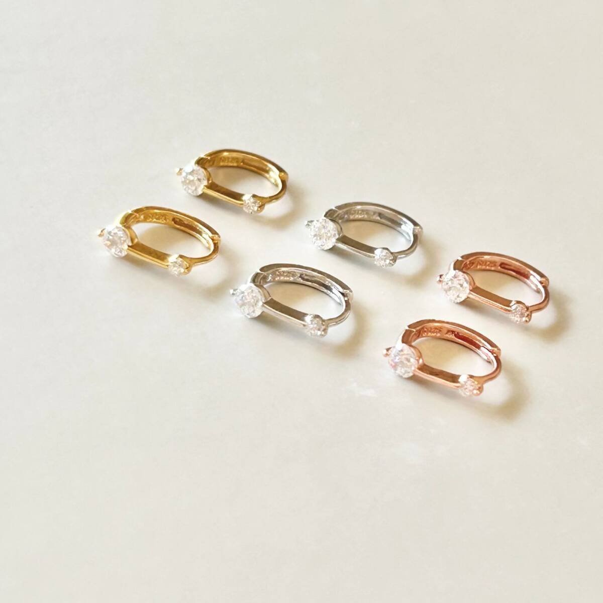 2粒のジルコニアがキラキラと輝く上品なピアス。