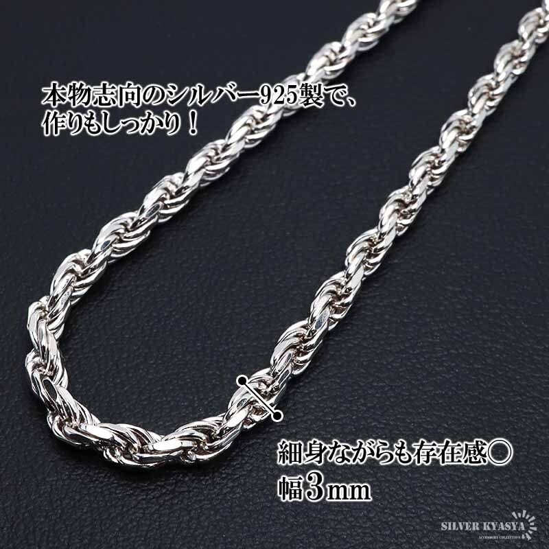 | 商品概要 | ■ロープチェーンネックレス 高密度でしっかりした厚みのあるフレンチロープチェーンネックレス。ボリュームたっぷりで存在感抜群の仕上がり。表面に施したカッティングが複雑に光を反射してキラキラと輝き高級感を演出します。 ■イタリア製の留め具 圧倒的に壊れにくい!イタリア製のカニカン留め具を採用。SILVER KYASYA刻印プレート付き。 ■SILVER KYASYAオリジナルアイテム 人気のシルバー925を取り入れたオリジナルチェーンシリーズ。 ・素材感と使用感にこだわったクオリティ満点のアイテムです! ・工房にて長年経験を積んだ職人さんが責任を持って製造! ・発送前にもスタッフが丁寧且つしっかり検品! ぜひ一度お試しください! |