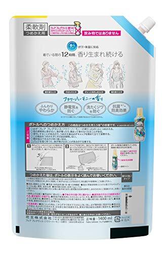 「【大容量】フレアフレグランス 柔軟剤 フラワー&ハーモニー 詰め替え 大容量 1400ml」▼4901301391957▼(商品説明)フラワー&ハーモニー・ 1400ml ・・Size:1400ml・商品サイズ (幅×奥行×高さ) :20.0×12.0×31.5・内容量:1400ml・ブラント名:フレアフレグランス・メーカー名: 花王・原産国名: 日本説明 独自技術「汗・体温に反応する香りセンサー」に新技術を加え、これまで消えやすかったやさしい香りも、繊維内部にしっかり閉じ込めます。 だから、香りの第一印象が一日中あざやかに続きます。 ふんわり、素肌に心地いいやわらかさに。 抗菌・防臭でイヤなニオイを防ぎます。 洗たくじわ・静電気も防ぎます。 みずみずしくふんわり香るフラワーハーモニーの香り。