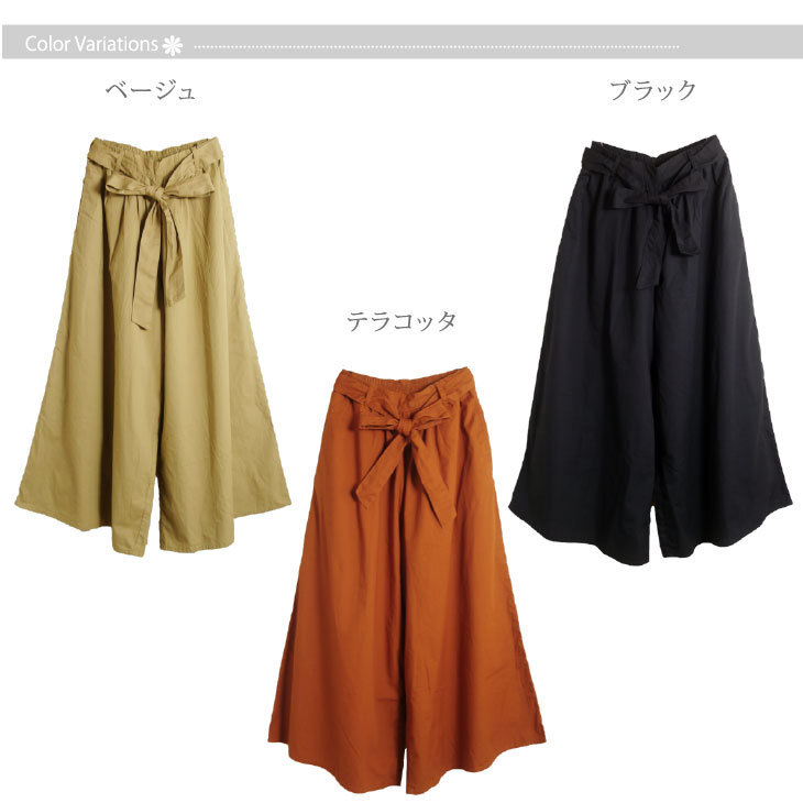 LL ベージュ ギャザーワイドパンツ レディース 裏地付き リボンベルト付き スカーチョ キュロット/新品