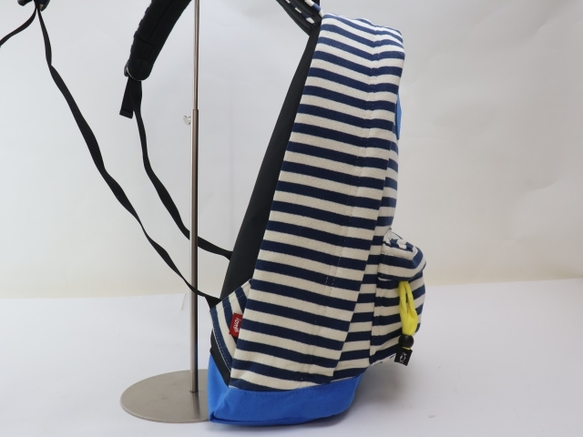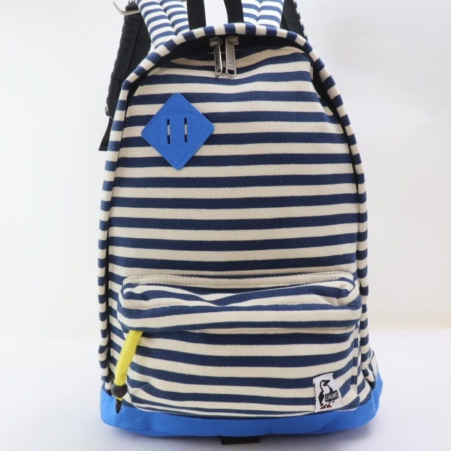 | 2504-55 チャムス リュックサック 美品 CHUMS スウェット製 ホワイト×ネイビー ボーダー柄 | |