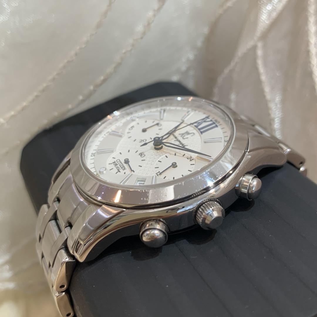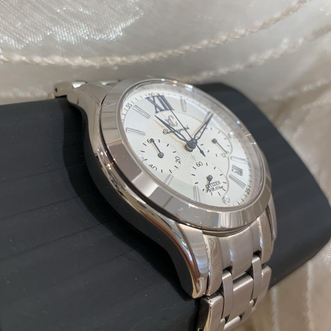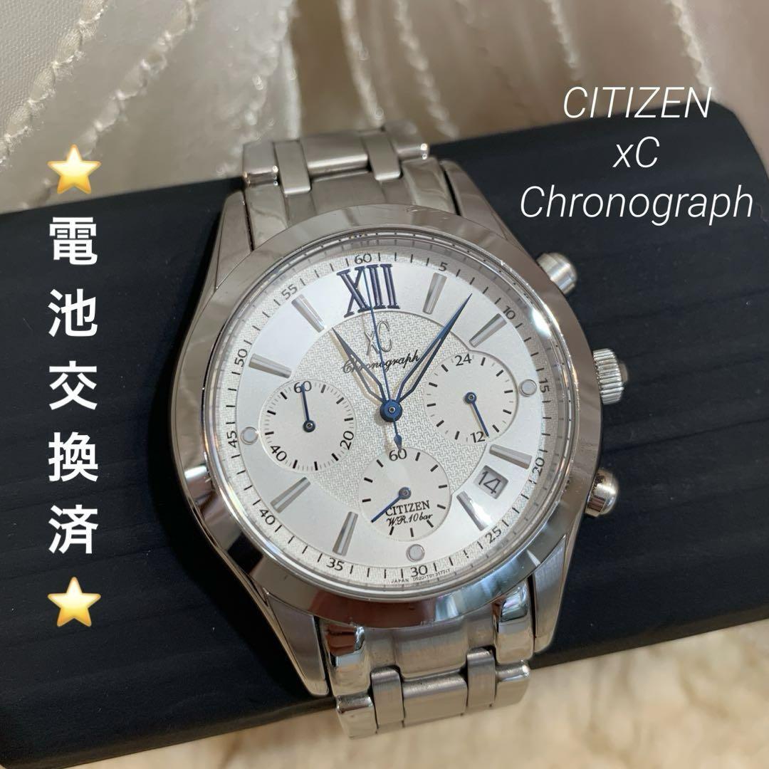 CITIZEN xC シチズン クロスシー クロノグラフ デイト レディースウォッチ 腕時計 0520-T008259 ステンレススチール ホワイト文字盤 三つ目 クォーツ 電池式 稼働品 電池交換済み ボーイズ ユニセックス