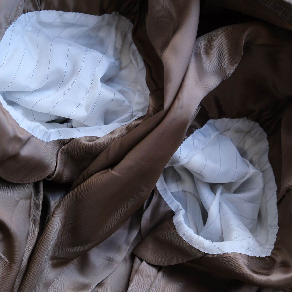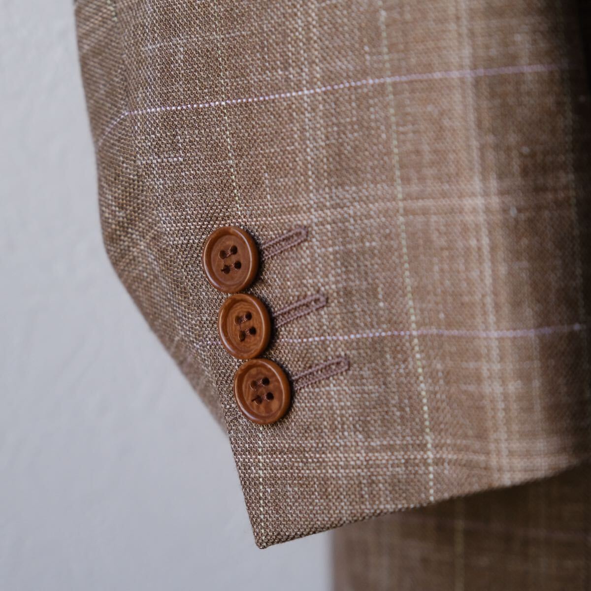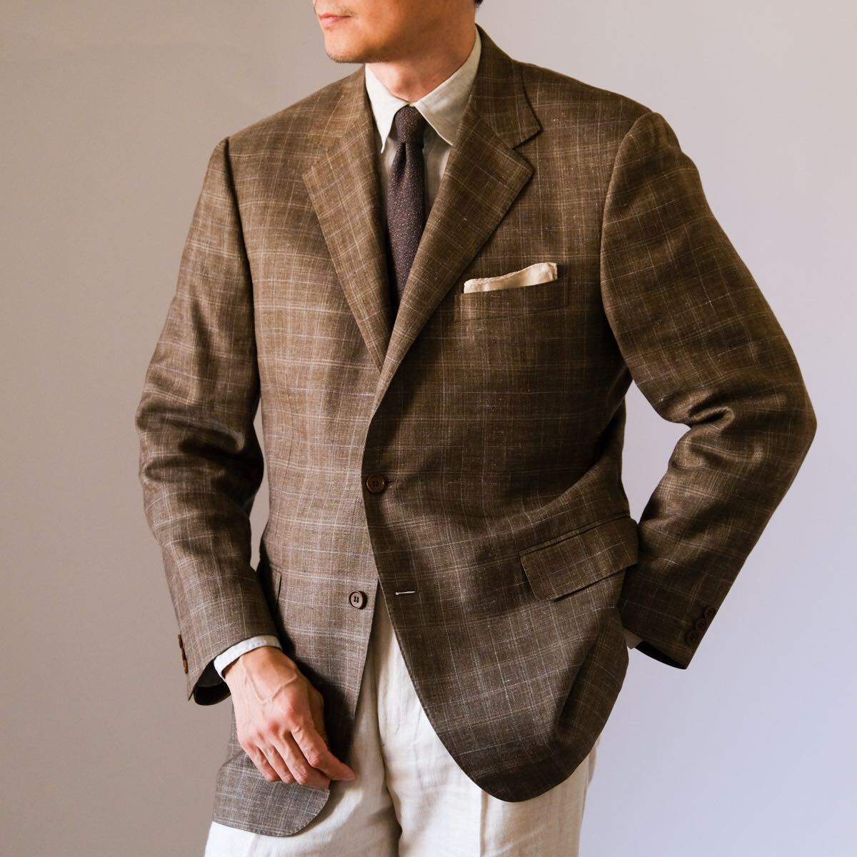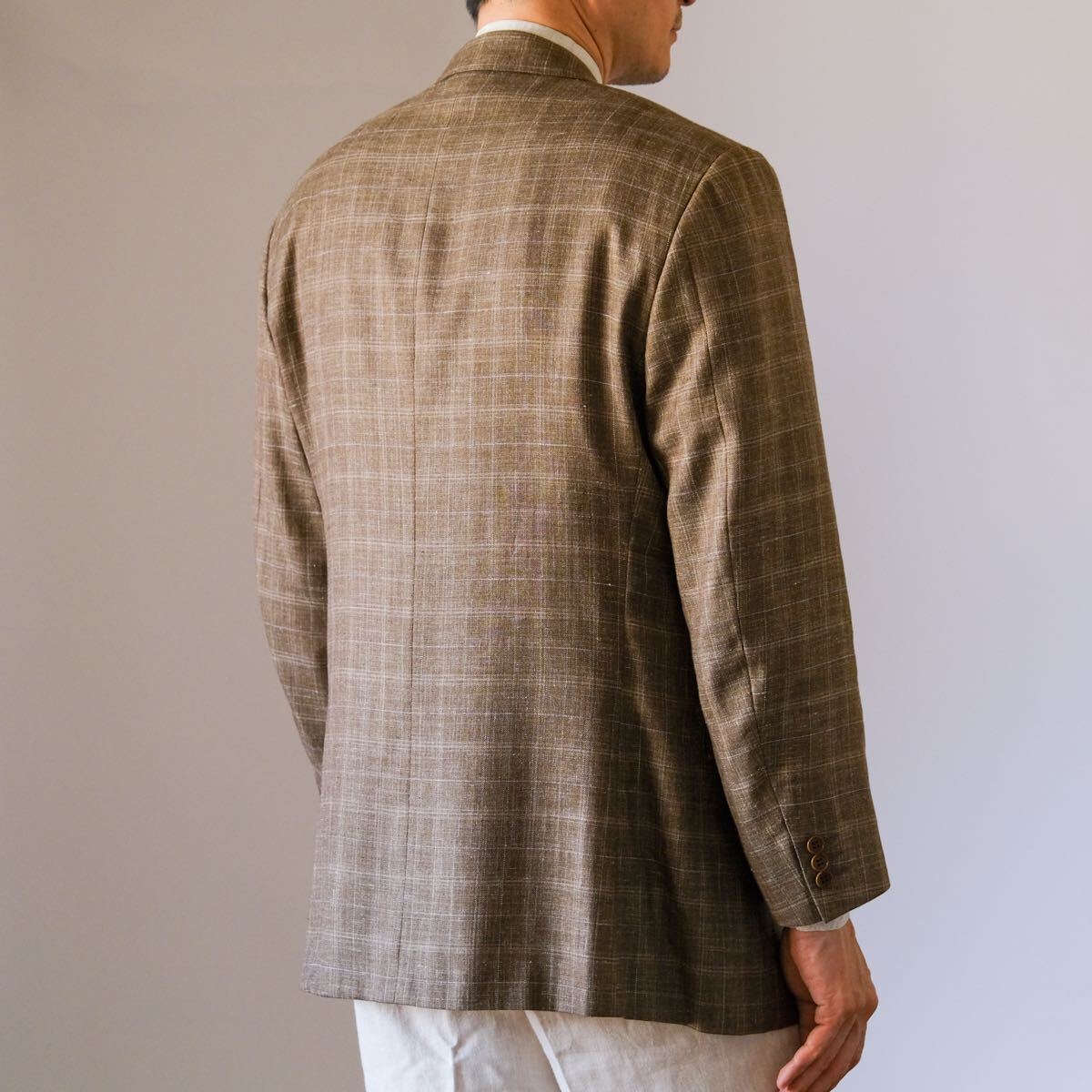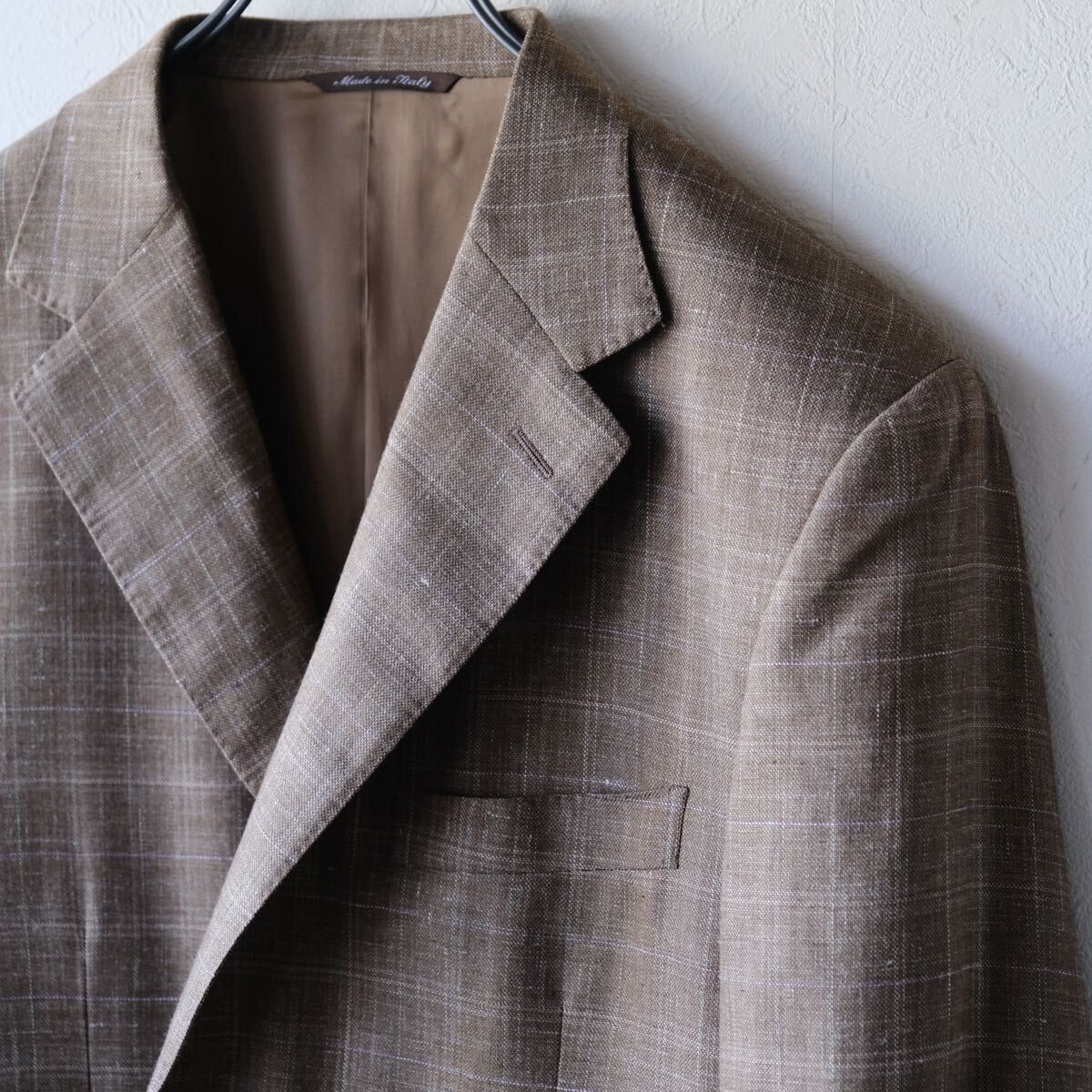 超高級質感の光沢ウールシルクリネン三者混でとてもしっとり、柔らかく、なめらかな肌触りで袖通しも気持ちが良いです。