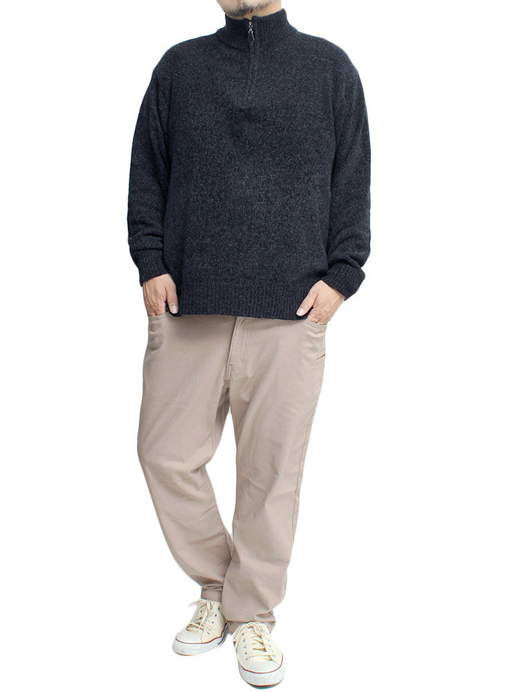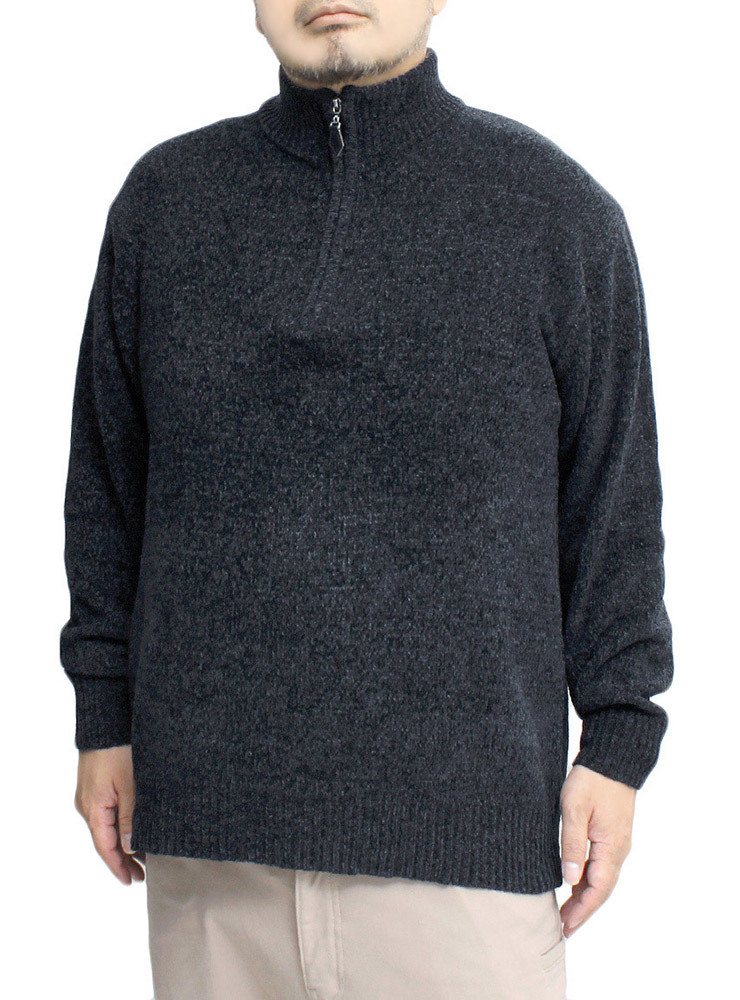 商品名 | 【新品】 3L ブラック ハーフジップ ニット メンズ 大きいサイズ 天竺モール 無地 ハイネック ニットソー セーター |