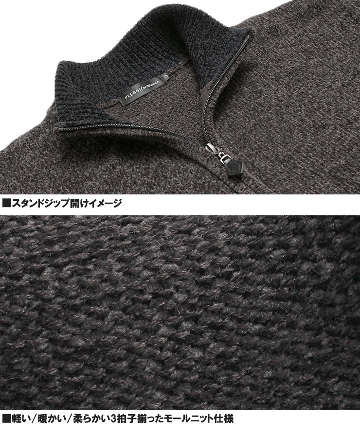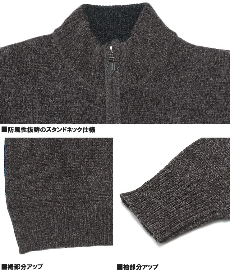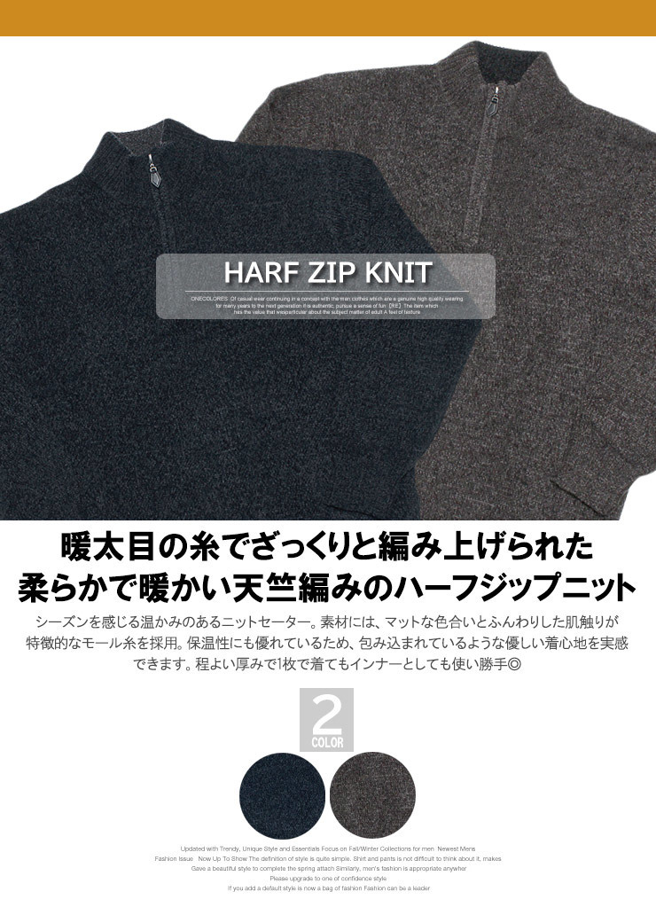 商品説明 | 太目の糸でざっくりと編み上げられた、天竺編みのハーフジップハイネックセーターの登場です。 |