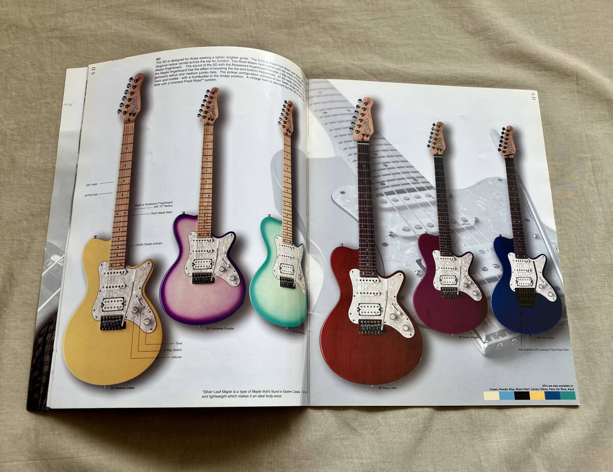 表紙を含め28ページのカタログです。エレキギター、有名なエレアコギター