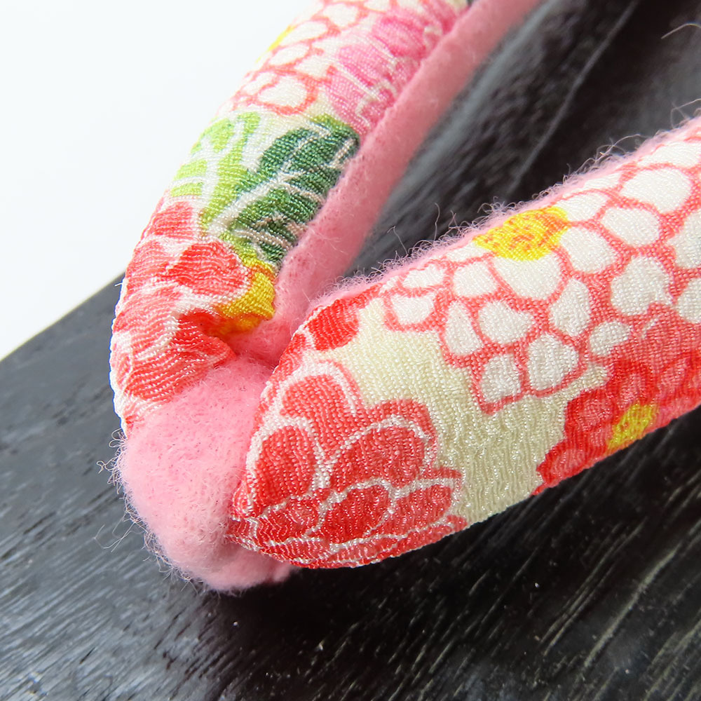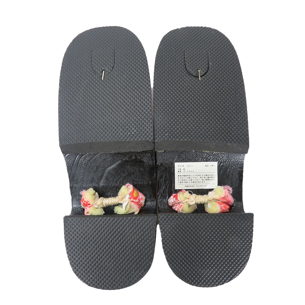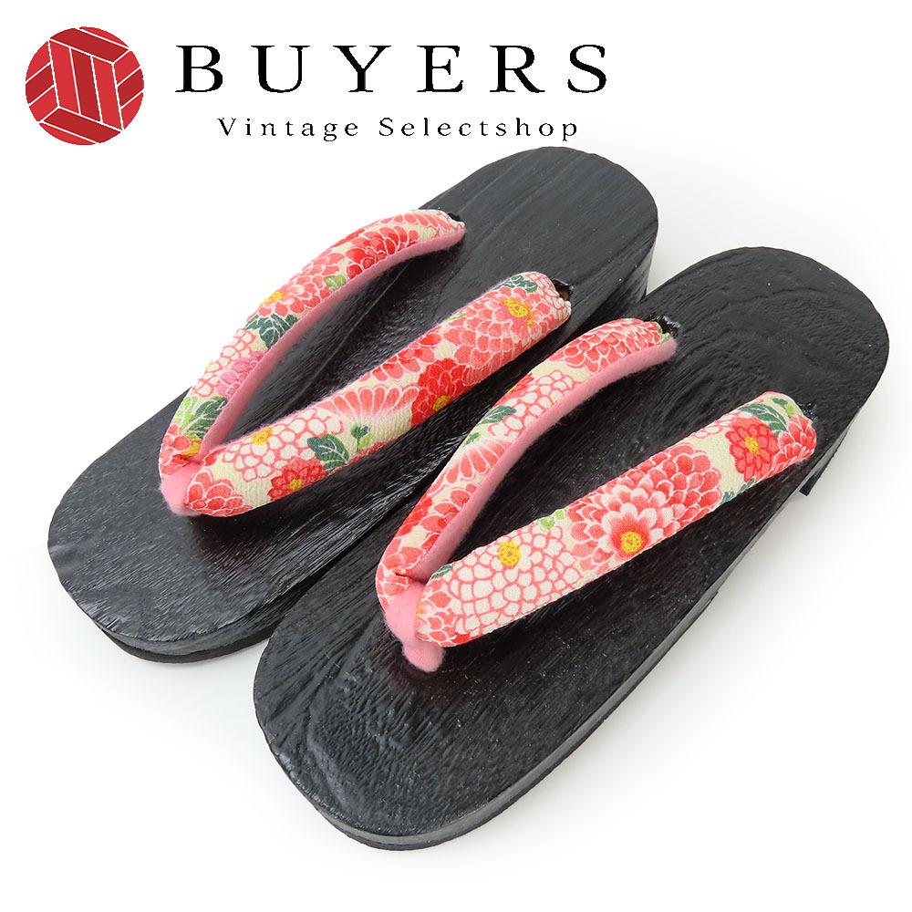 中古 下駄 未使用展示品 フリーサイズ ポリエステル 桐 ピンク系 黒 浴衣用 菊模様 華やか 和装 呉服 和服 きもの レディース 女性