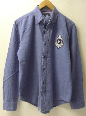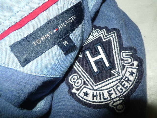 ◆ ◆TOMMY HILFIGER トミーヒルフィガー エンブレムワッペン フラン ネル シャツ 薄ブルー系 サイズM