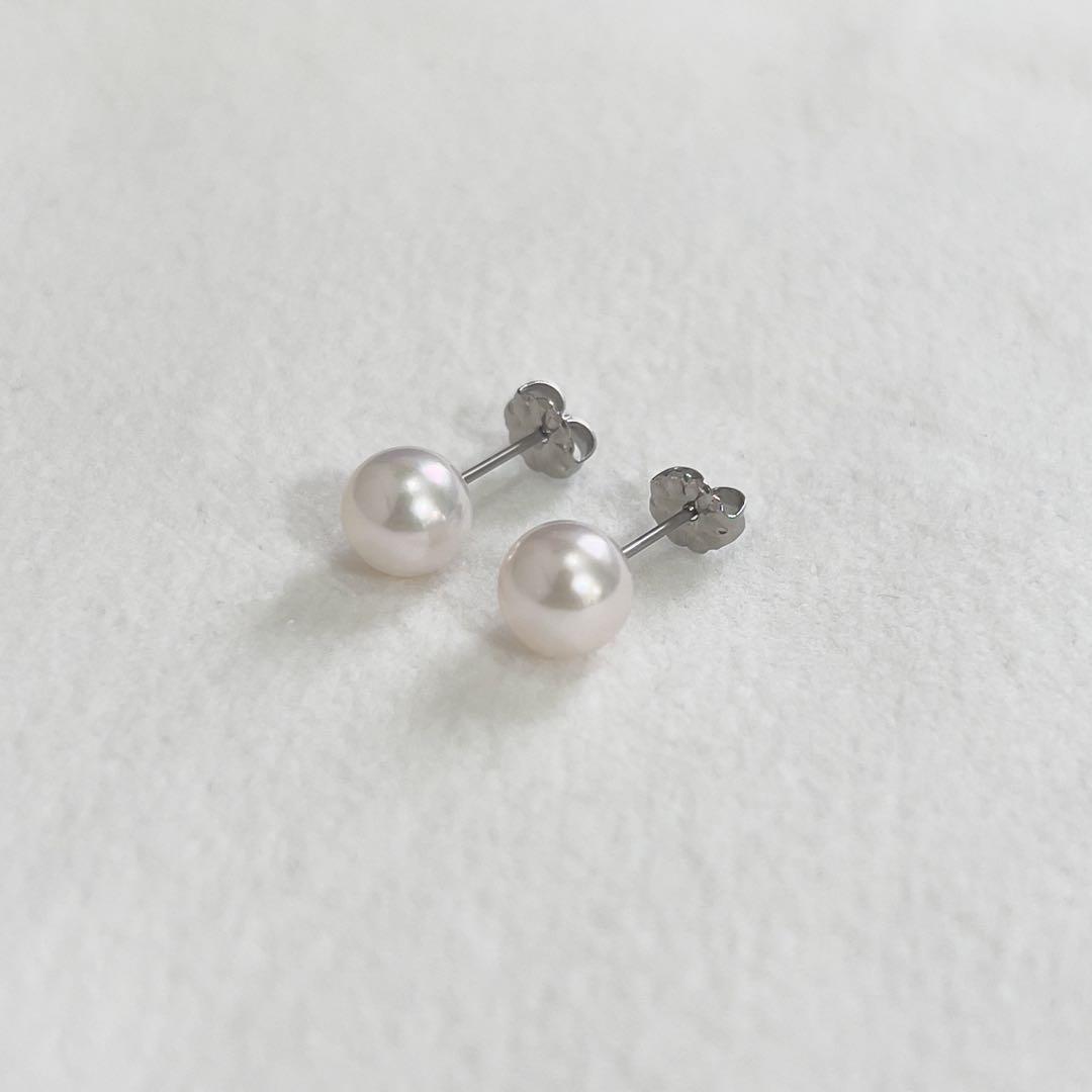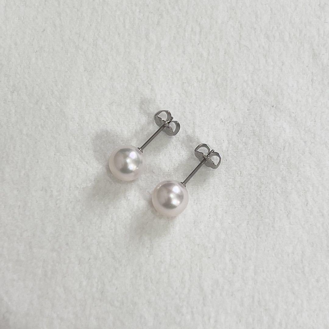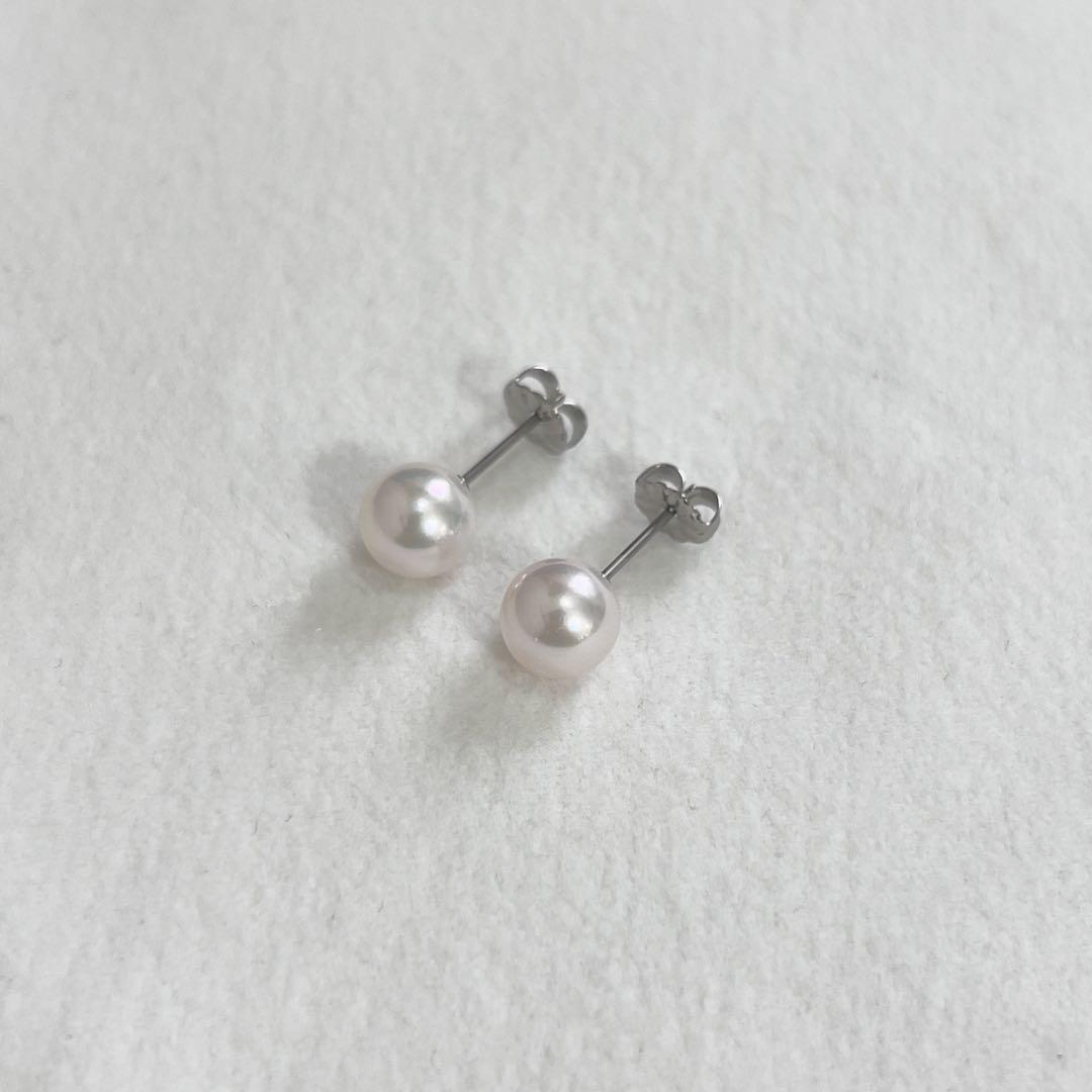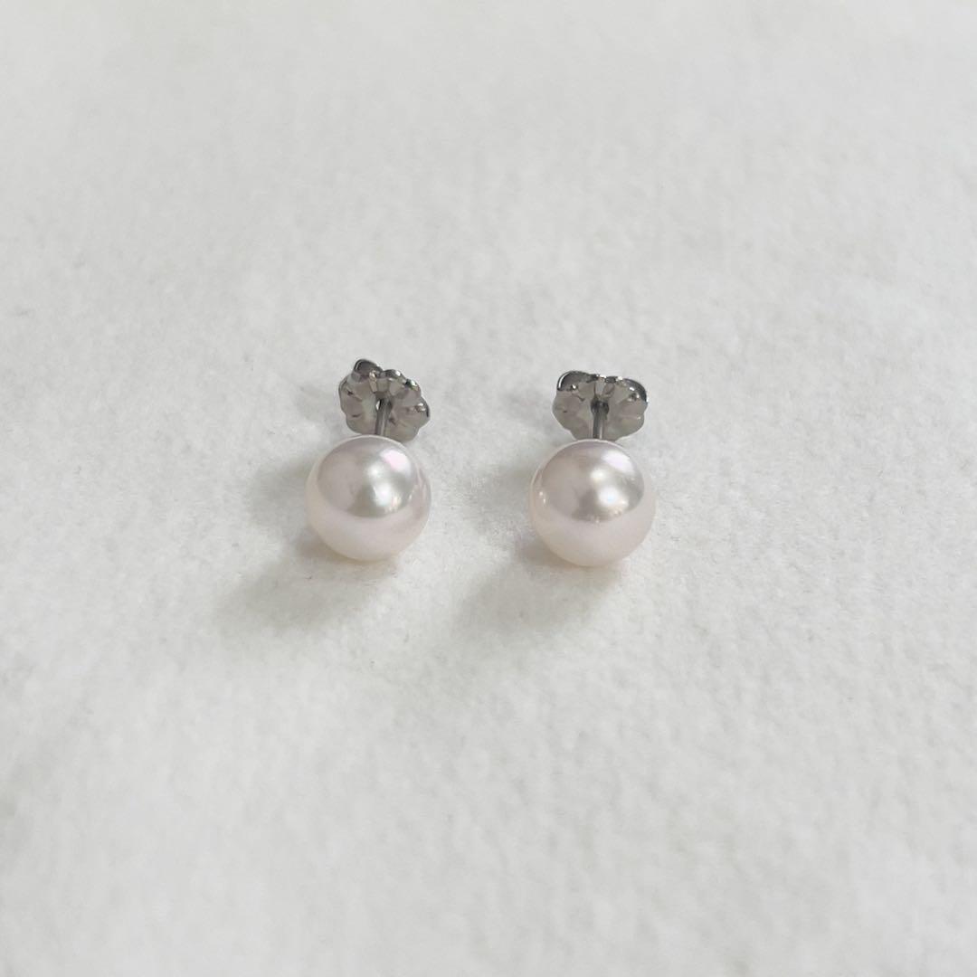 人気の7.5-8ミリサイズ、あこや真珠の一粒パールピアスです。