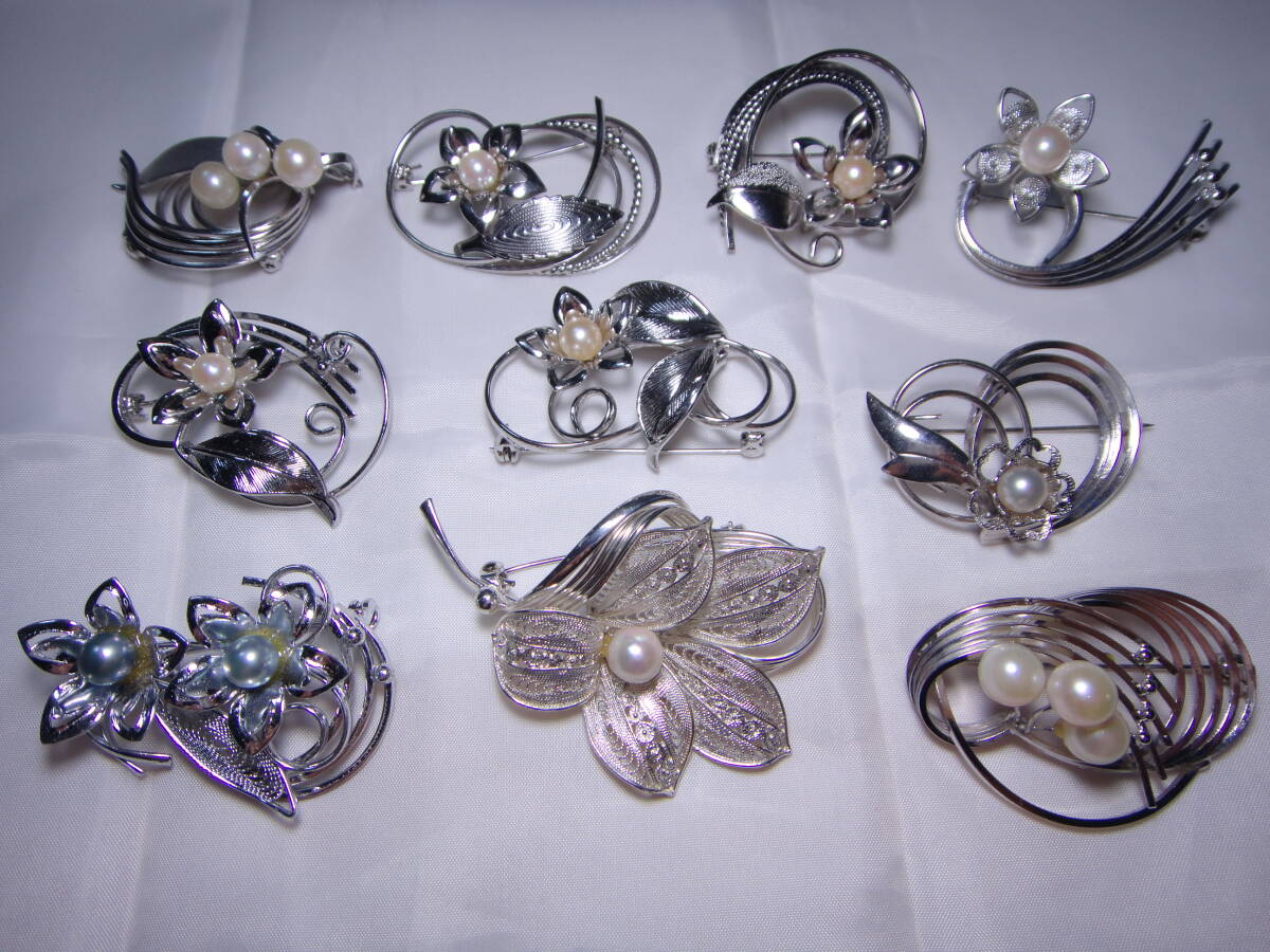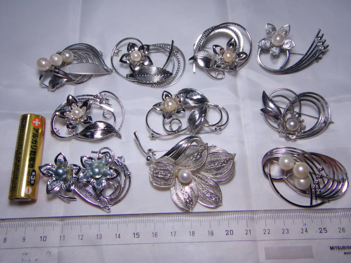 アコヤ真珠 本真珠 本パール 全て本真珠 ブローチ 10点 おまとめ ツヤテリ玉入り 大玉入り カラーパール入り ヴィンテージ C200