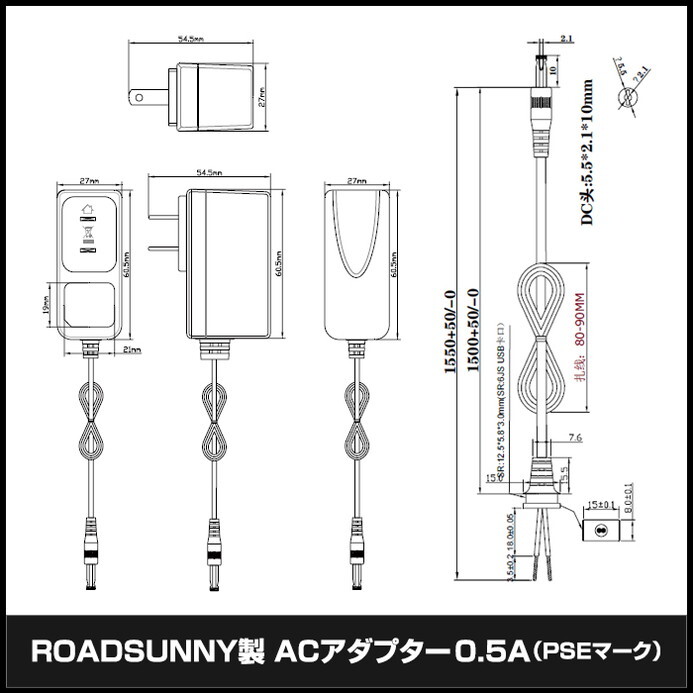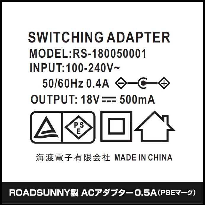 | サイズ:約60.5×54.5×27.0mm(奥行/幅/高さ) ケーブル長(出力):約1.5m DCジャック外径:5.5mmφ DCジャック内径:2.1mmφ 分類:スイッチングACアダプター 型番:RS-180050001 出力電圧:18V 出力電流:0.5A 消費電力:9W メーカー:ROADSUNNY(ロードサニー) 入力端子:差込プラグ 出力端子:DCジャック ジャックタイプ:ストレート 定格入力電圧:AC100~240V 入力周波数:50/60Hz 極性:センタープラス DCコード規格:AWG26/300V/80℃ 重量(本体):約70g 保証:商品到着後、1年間の品質保証が付いております。 万が一品質に問題があった場合は、メールにてご連絡ください。 | |