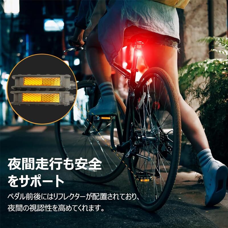 | 商品名 | 自転車 ペダル 樹脂製 リフレクター付き 滑り止め フラットペダル 両面踏み 薄型 軽量 ロードバイク/クロスバイク/mtbなど用 |