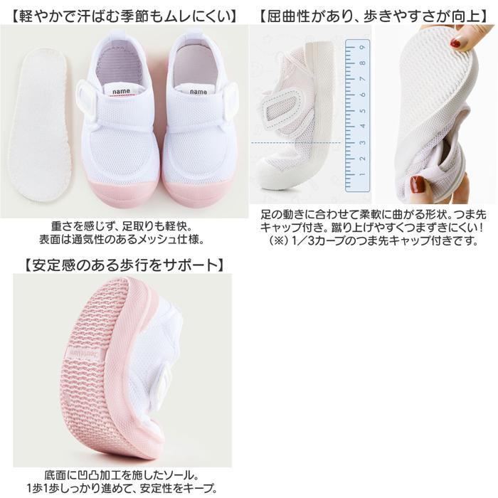 | 商品説明 | ・・【保育園や小学校での室内履きに】 ・シンプルなデザイン&履き心地もバツグン!「キッズ用上履き」。 ・【締め付けを感じず自分サイズに】 ・ベルトは面ファスナー式。お子さまの足に合わせて微調整でき、脱げにくく抜群のフィット感◎ ・【お友達とお揃いでも大丈夫】 ・タン部分に名前を書けるスペース付き。履き間違いを防げるのが嬉しい♪ ・【柔らかく負担をかけない履き心地】 ・ソフトな素材で足元を優しく包み込む◎締め付けることなく、ストレスフリー。 ・【軽やかで汗ばむ季節もムレにくい】 ・重さを感じず、足取りも軽快。表面は通気性のあるメッシュ仕様。 ・【屈曲性があり、歩きやすさが向上】 ・足の動きに合わせて柔軟に曲がる形状いつま先キャップ付き。蹴り上げやすくつまずきにくい! ・(※)1/3カーブのつま先キャップ付きです。 ・【安定感のある歩行をサポート】 ・底面に凹凸加工を施したソール。1歩1歩しっかり進めて、安定性をキープ。 ・【成長に合わせて選べるサイズ】 ・豊富なサイズをラインナップ。成長の早い時期も買い替えやすい! |