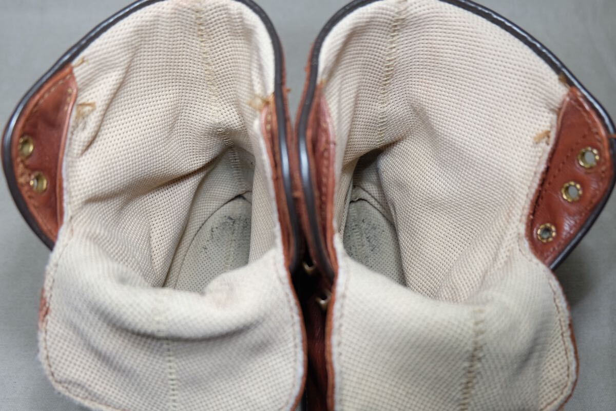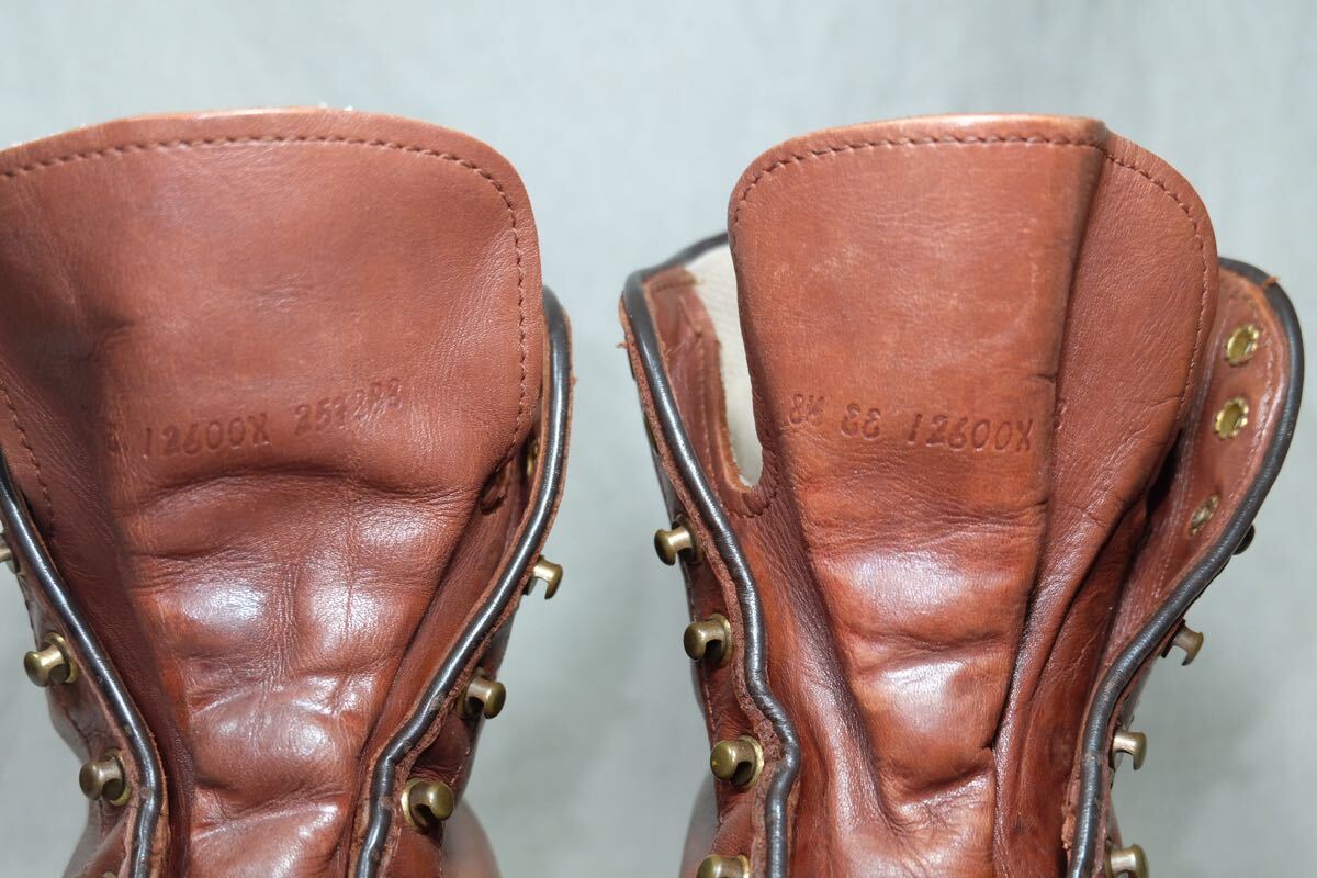 この度はアクセスありがとうございます。 世界中で愛されるアメリカの老舗アウトドアブーツブランドDannerのヴィンテージブーツでコアなファンを持ちながら廃盤になってしまった今は手に入らないモンキーブーツになります。永い時間をかけて作られた上質でしなやかなオイルカウレザーを堅牢で防水性に優れたステッチダウン製法で丁寧に仕上げた1足です。ソールもvibram社製コマンドソールで悪路や悪天候にも強く、タフに堅牢に作られています。アメリカの古き良きハンドメイドの製靴技術で美しく仕上げられた極上の1足です。 この機会にぜひご検討よろしくお願いします。レッドウィング、エルエルビーン、ホワイツ、ウェスコ、アウトドアブーツ、ヴィンテージブーツ、登山靴がお好きな方にもオススメの一足です。 サイズ:US8.5EE 日本サイズ 約26.5cm 型:ブーツ アウトソール:30.5cm ソール最大幅:10.5cm ソール:vibramコマンドソール カラー:ブラウン 製造国:USA 素材:オイルカウレザー 状態:10段階中【7】 アッパー:目立ったキズ、汚れのない美品です。 ソール:目立ったキズ、汚れのない美品です。 付属品:なし 基本的にはノークレームノーリターンなのでご不明点等あればお気軽にご質問、ご連絡ください。 注意事項 確認はしておりますが、中古品のため小さなキズ、汚れ等を見落とす場合があるので神経質な方はご入札をお控えください。 サイズはあくまで標準的なサイズ感なので、実寸やメーカーサイズをご参考頂きますようお願いいたします。 三日以内にご連絡いただけない場合、評価の末再出品させていただきますのでご了承ください。 | |||