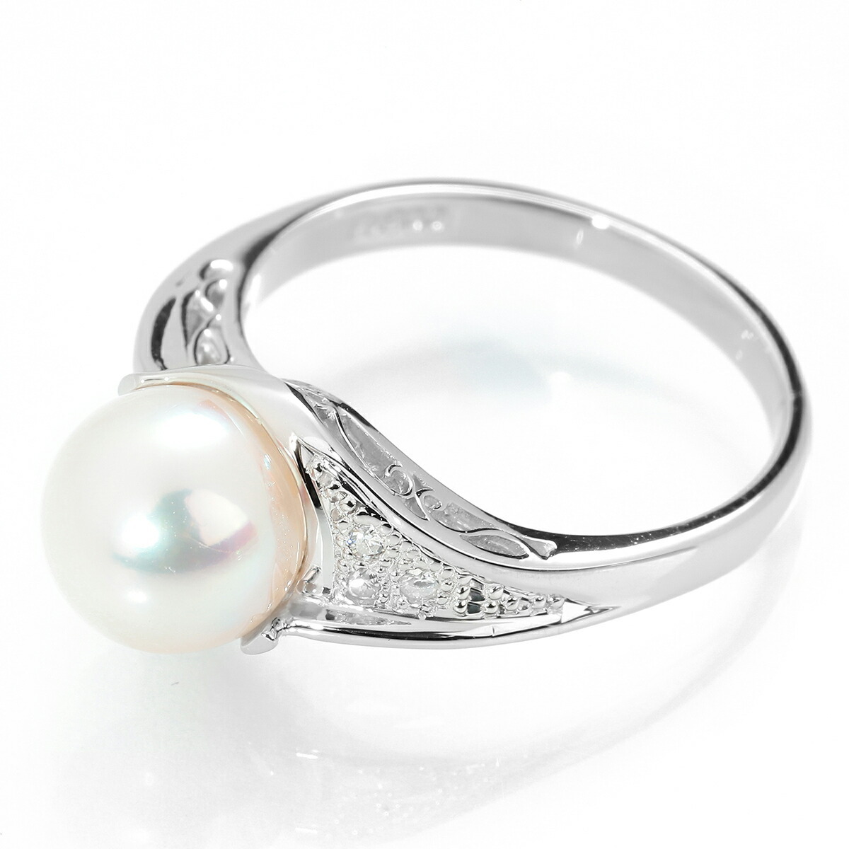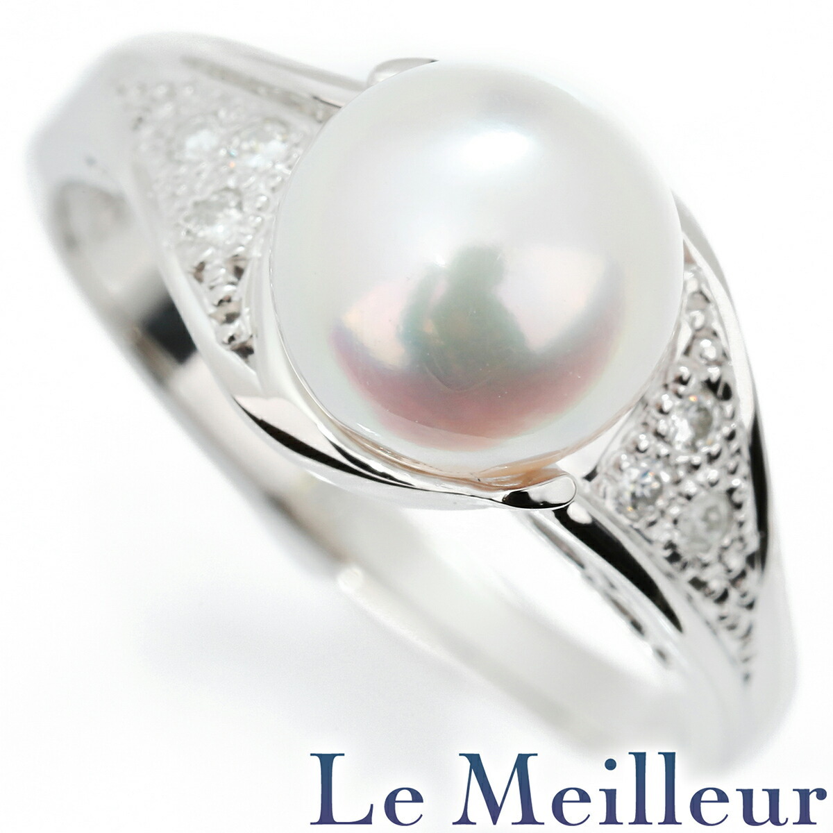 美しいテリと艶のあるアコヤ真珠のプラチナリング。ミルグレイン加工をした土台にダイヤをお埋め込込みクラッシックで優雅な雰囲気を与えてくれます。