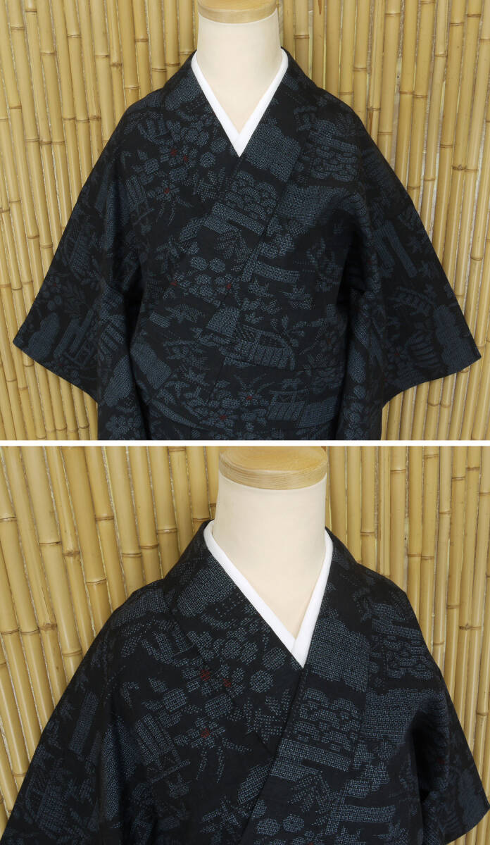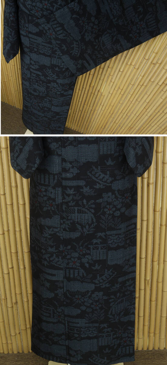 ●――――――――――――― 寸法(約) ―――――――――――――― ● 身丈(肩山総丈):160 cm ● 裄丈:66 cm(袖幅:33.5 cm) ● 袖丈:49 cm ● 前幅:23 cm ● 後幅:29.5 cm