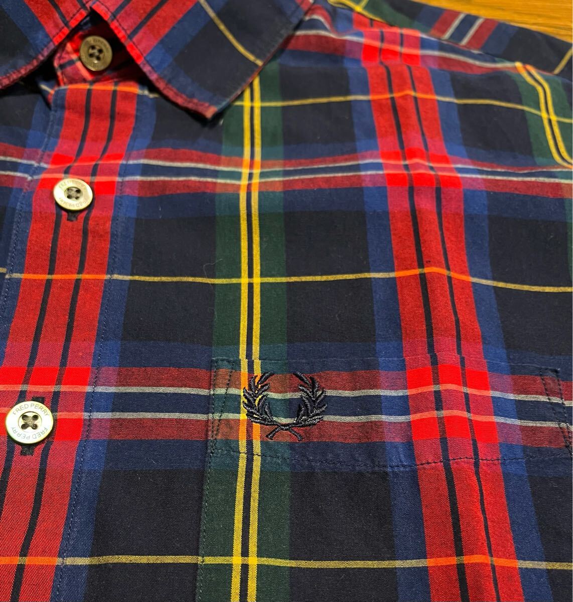 発色の良い大柄タータンチェックの長袖シャツです。