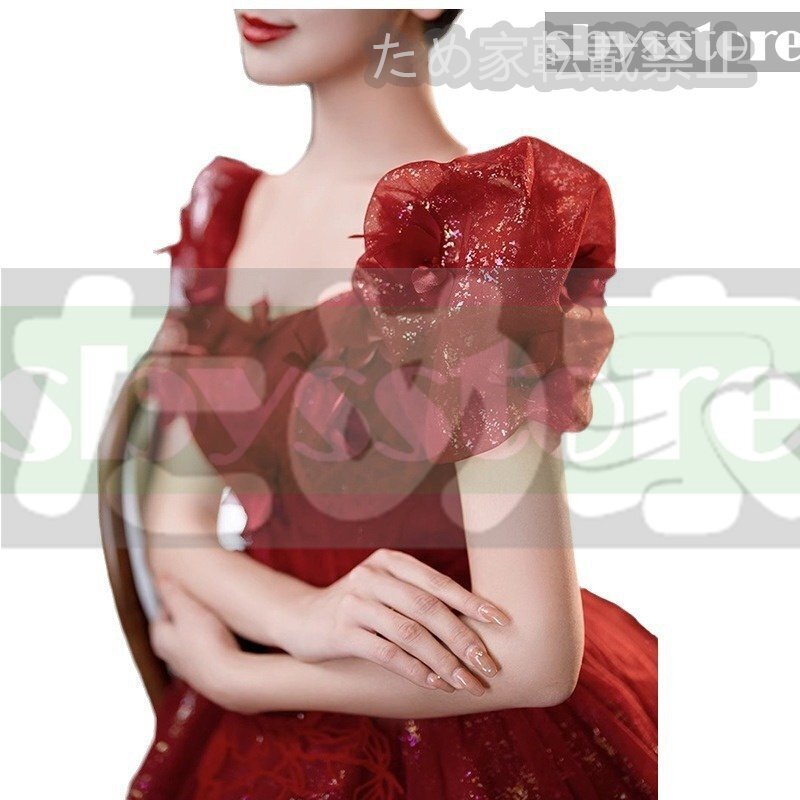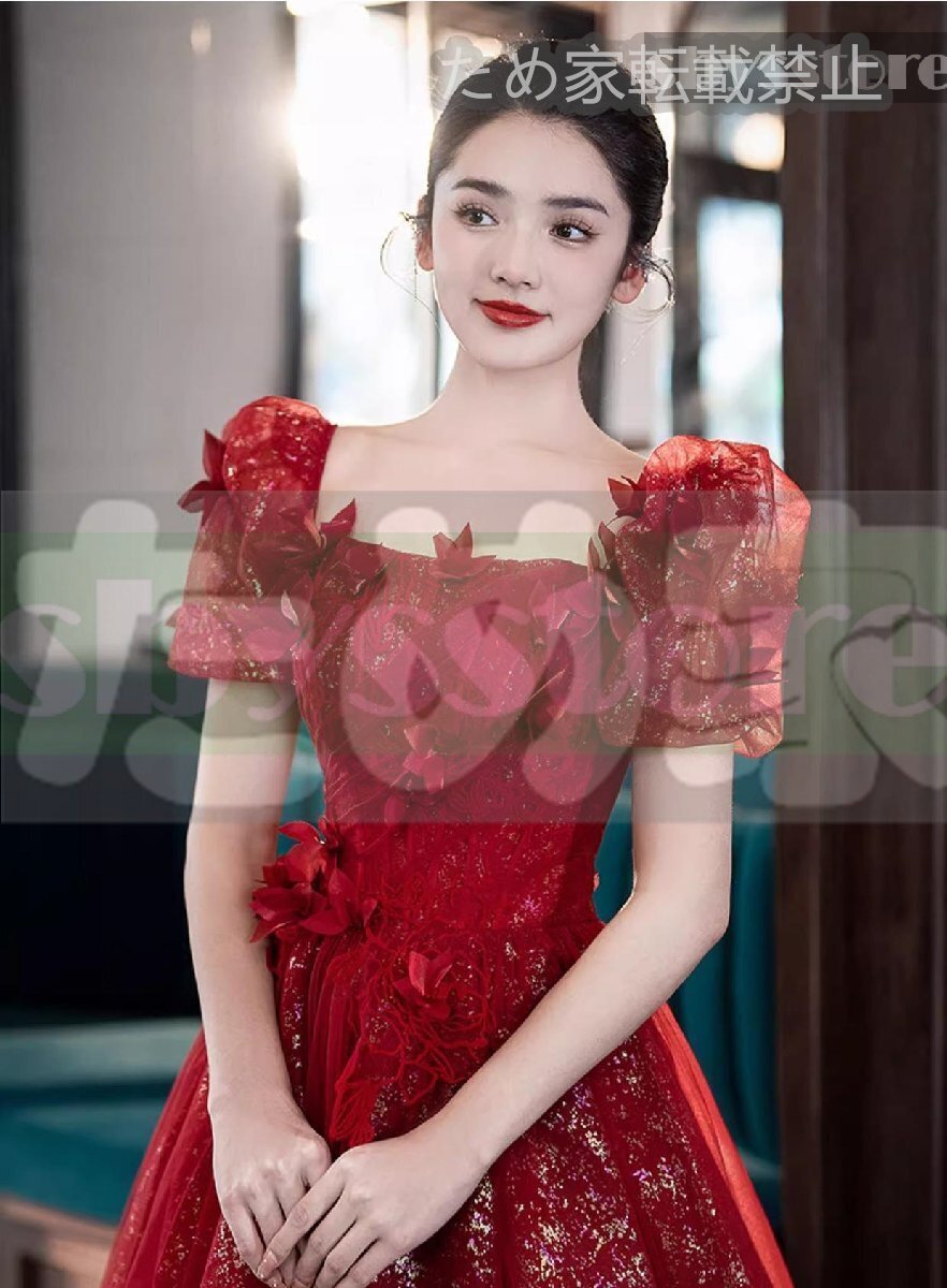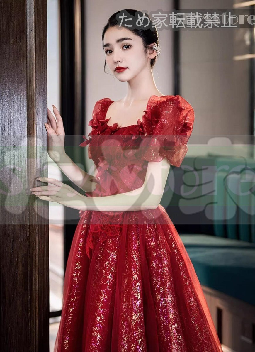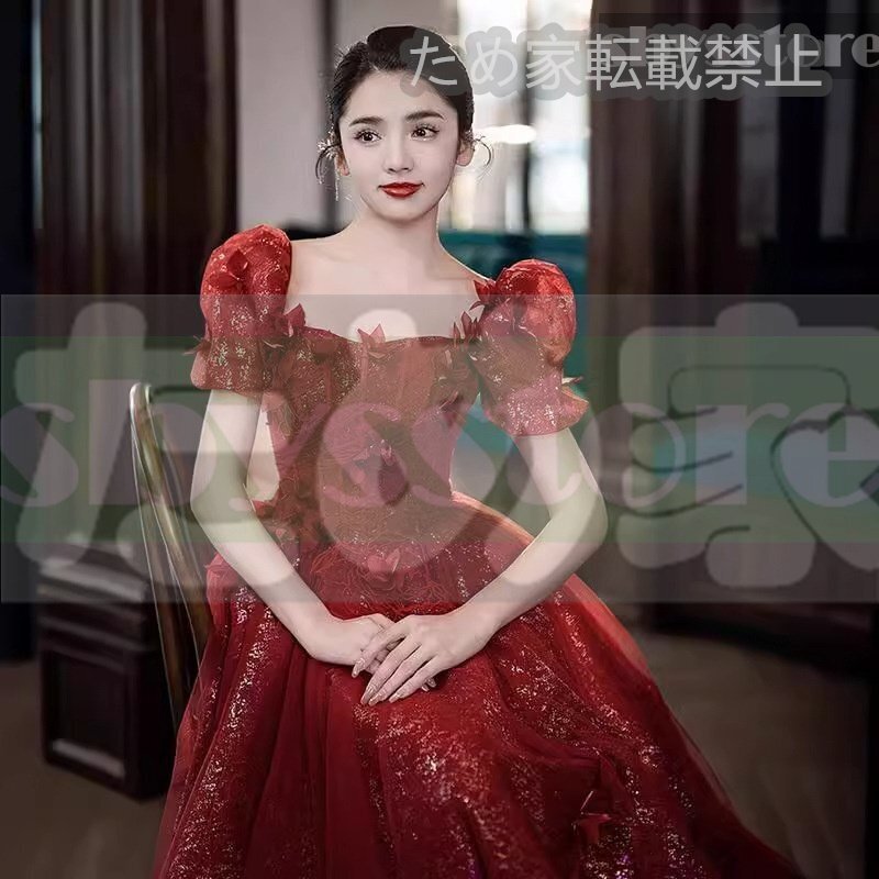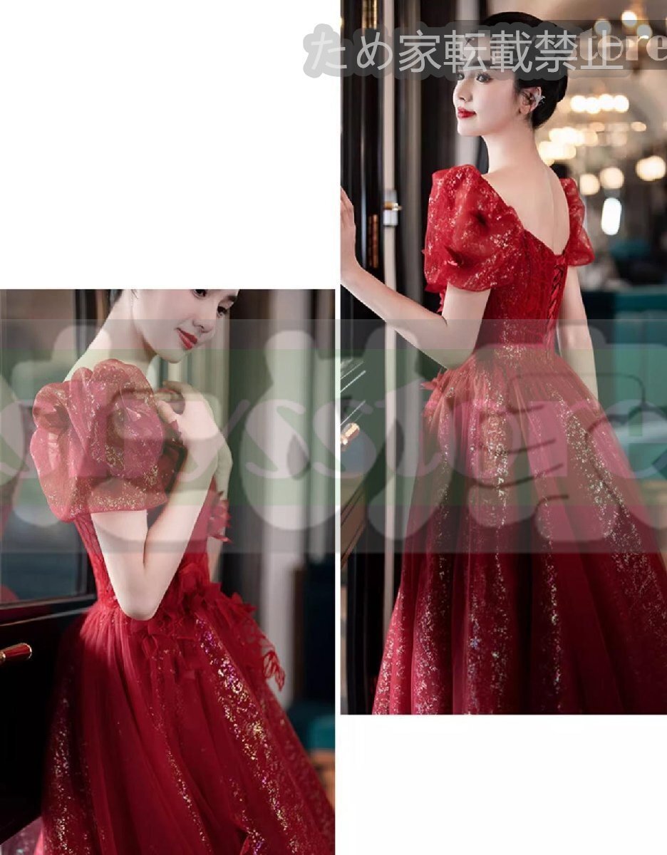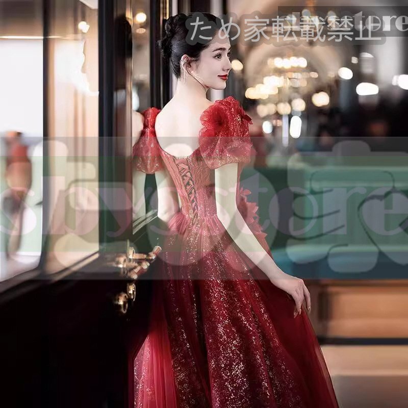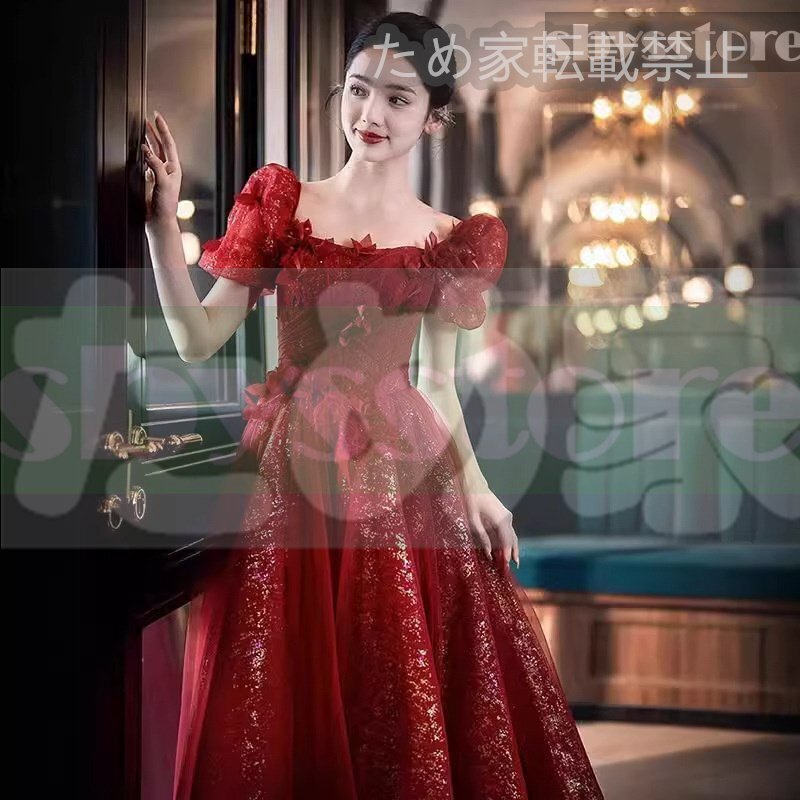ワインレッド 新婦 気品 スパンコール 結婚 婚約 ドレス 司会者 年会 ドレス