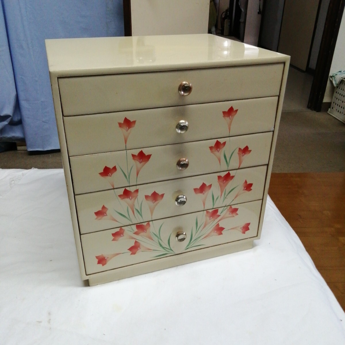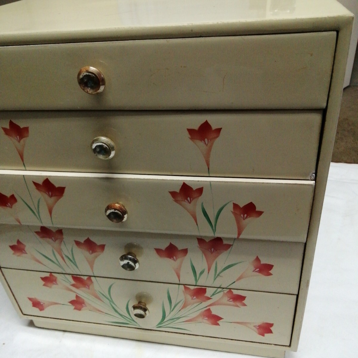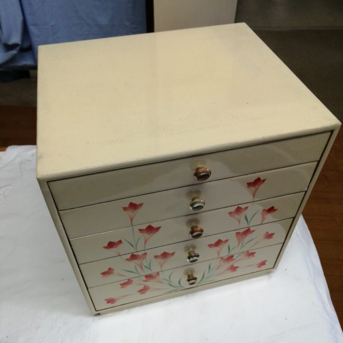 アンティーク 小物入 家具 木製 昭和レトロ 5段 可愛い (約高328×横305×255mm)