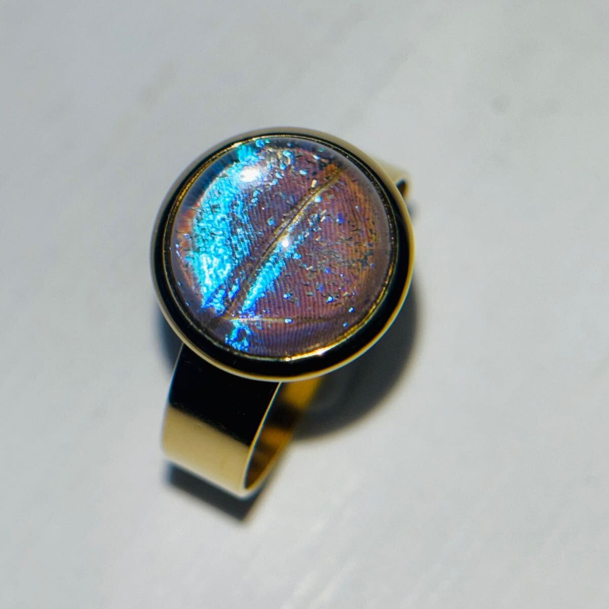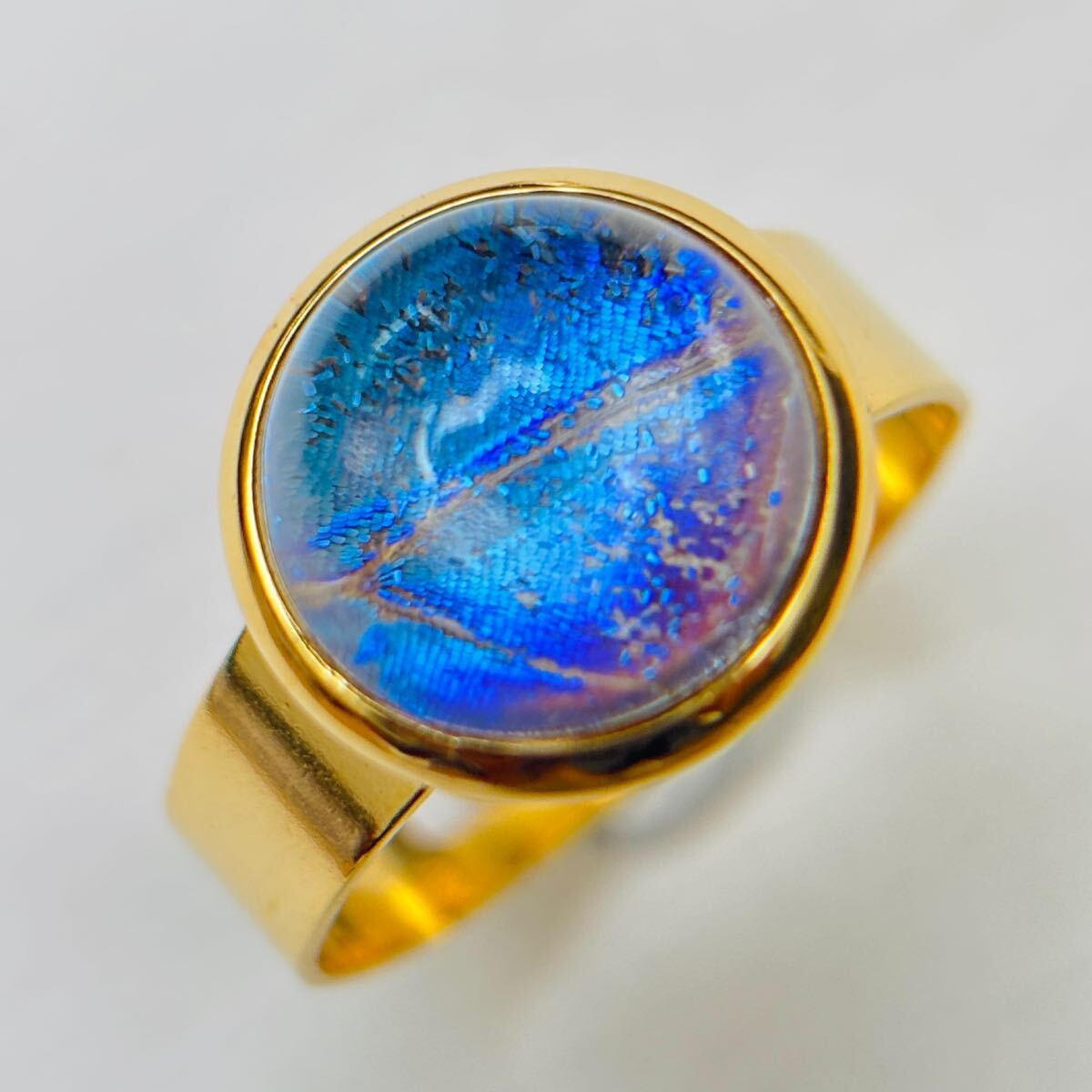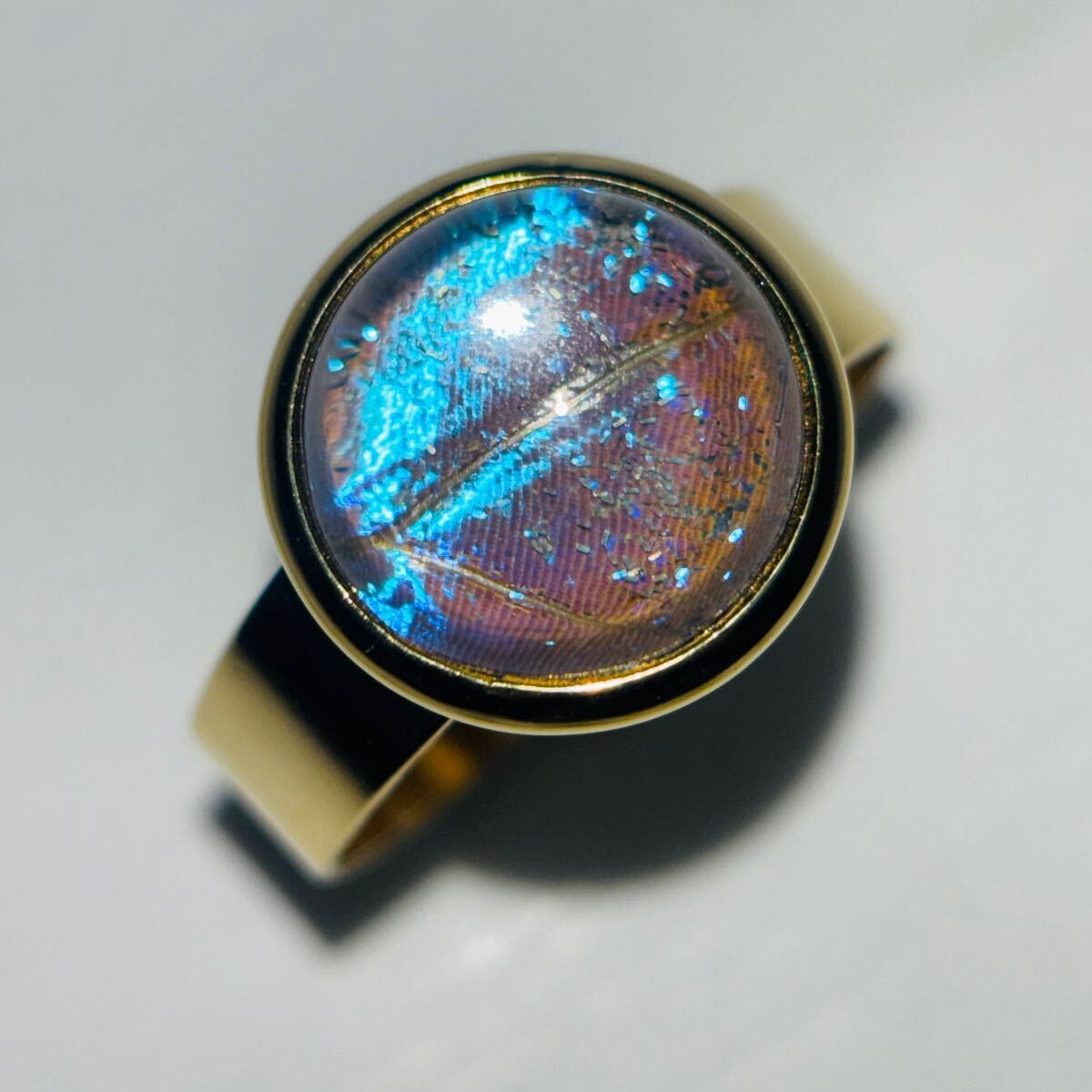 本物のモルフォ蝶の羽を使ったハンドメイドの指輪です。