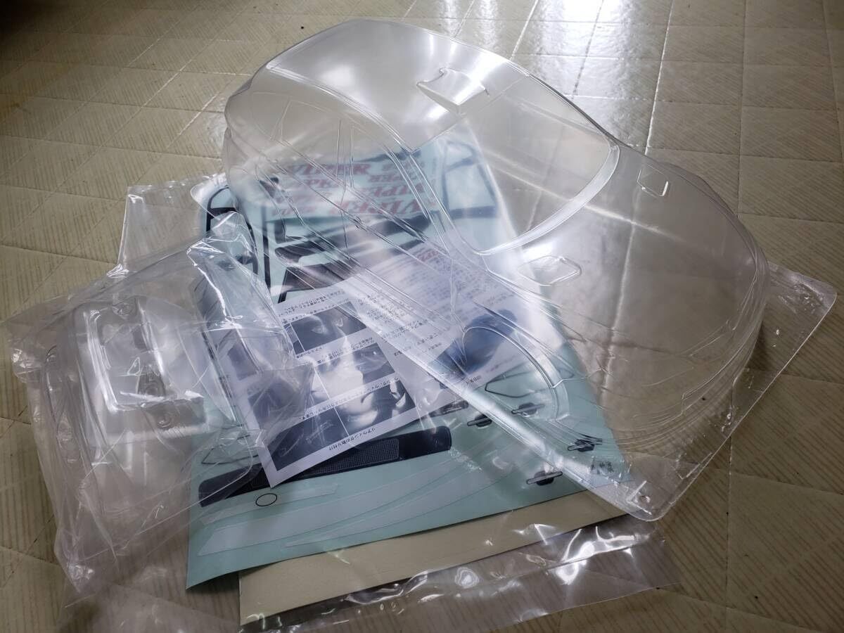 ボディ/ライト&ウイングパーツ(ポリカ製)/ステッカー/ウインドウマスキングシートのセットとなり、新品未使用品ではありますが古い商品でもありますのでノークレームでお願いします。
