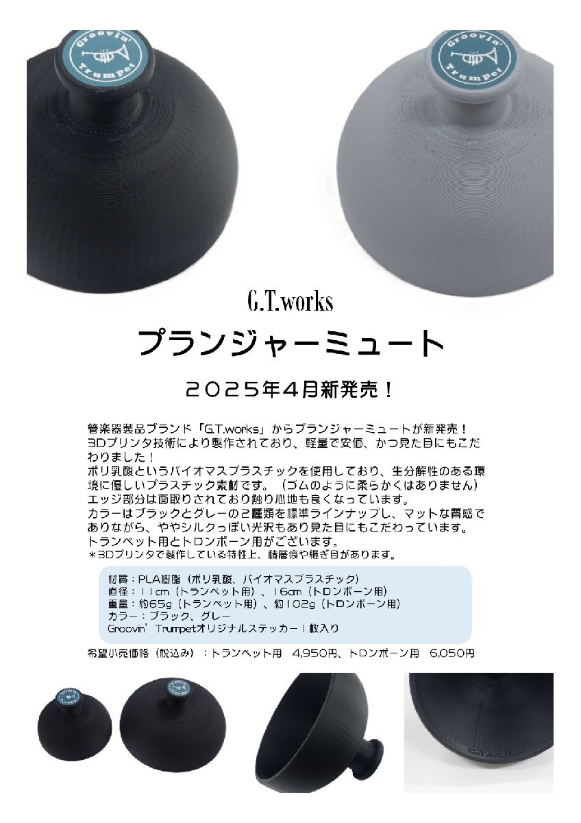 当店オリジナルブランド「G.T.works」から新発売のプランジャーミュート。