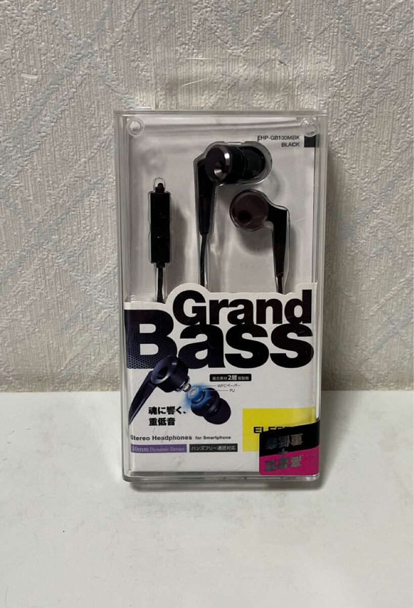 704i2809 エレコム ステレオ イヤホン カナル φ10mm ドライバー マイク付き 重低音 GrandBass ブラック EHP-GB100MBK