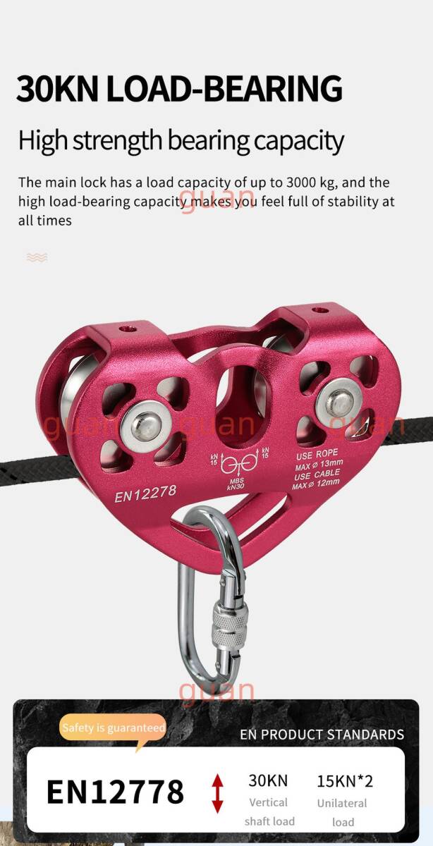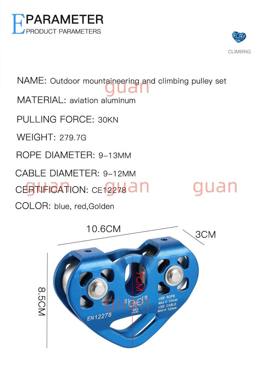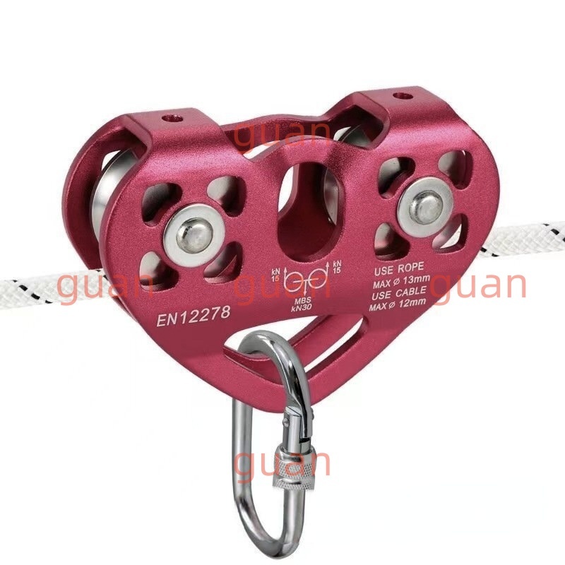アウトドアクライミングつり上げ輸送登山用滑車ハート型ツイン滑車ワイヤーロープ滑車ロープウェー組滑車