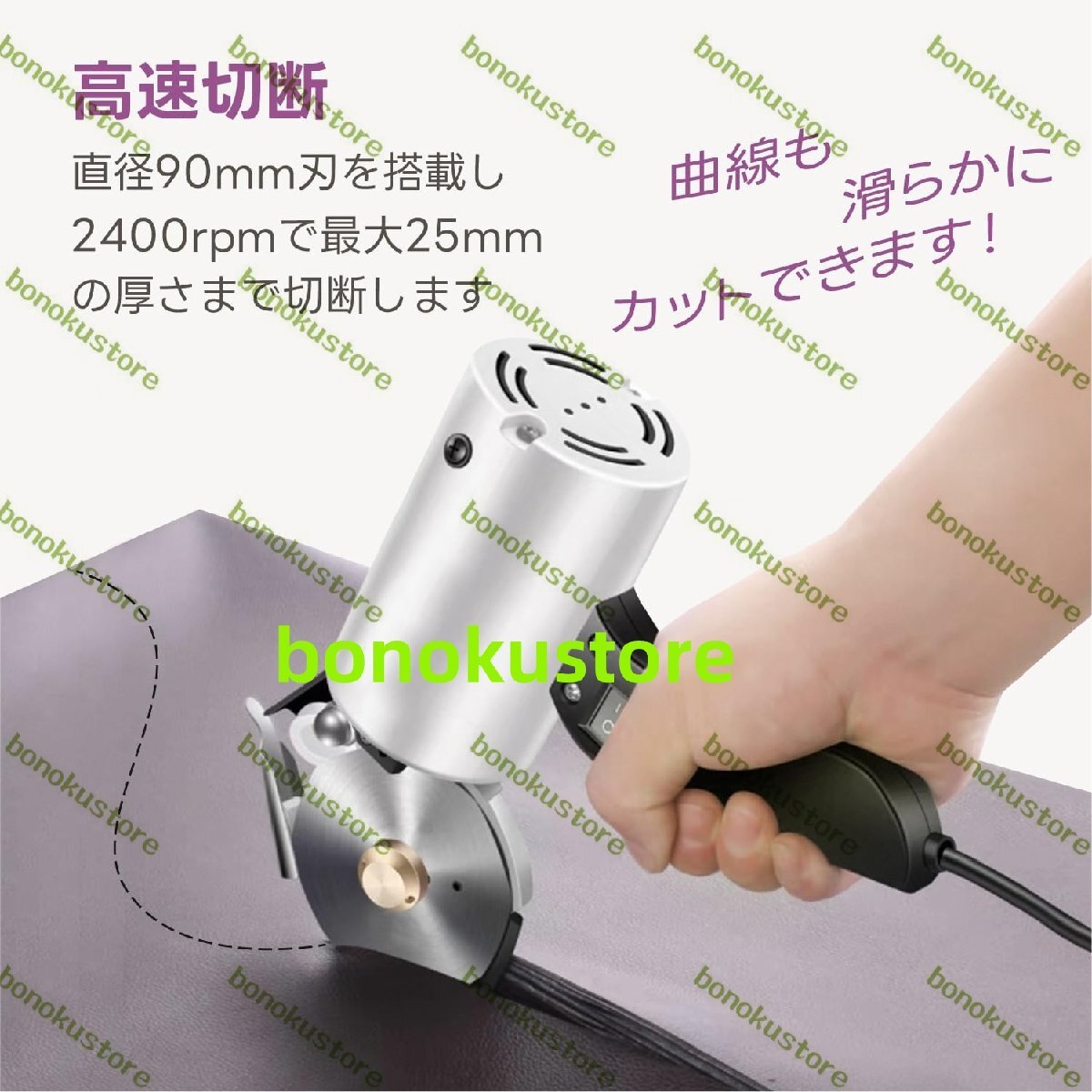 【高速切断】当社の電動布裁断機は直径90mm刃を搭載し、2400rpmで最大25mmの厚さまで切断します。 裁断は速く、きれいで、乱れることなくスムーズです。