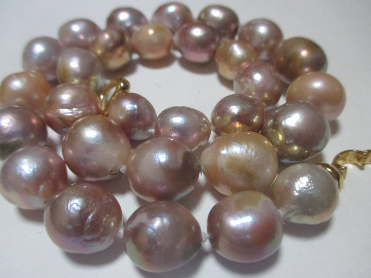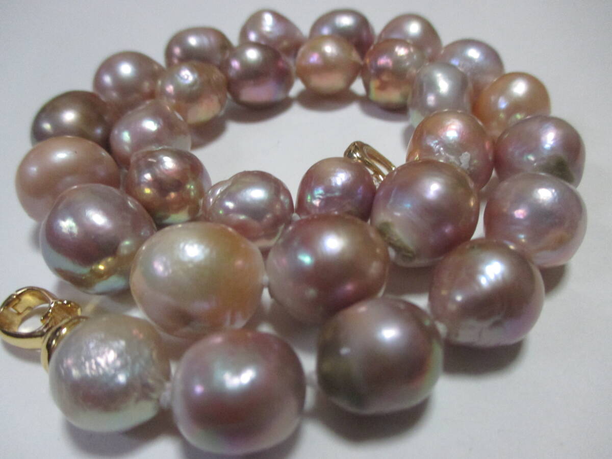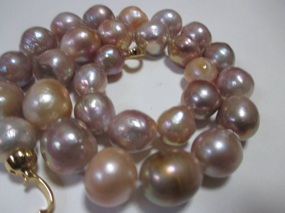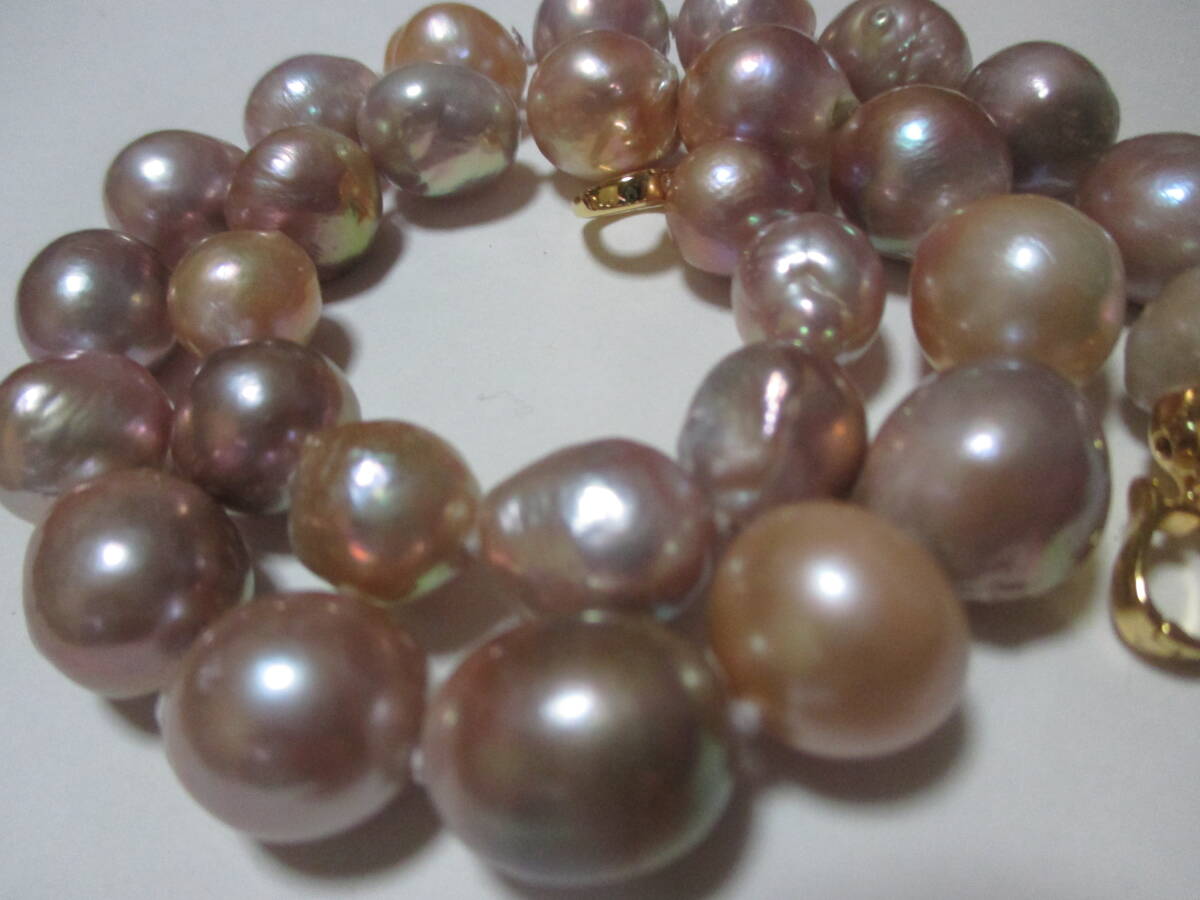 新品 南洋バロックほぼラウンド系美しいお色ピンクパープル系ネックレス♪魅力あるパールです♪シャインな輝き♪