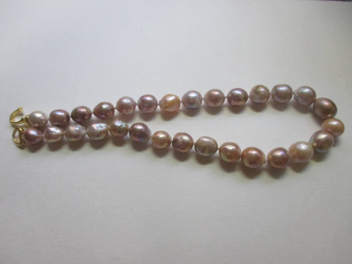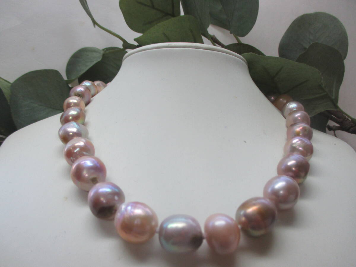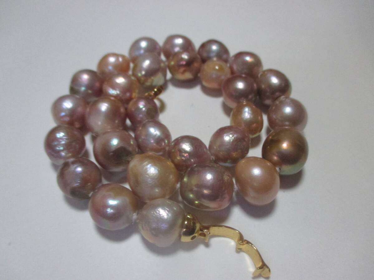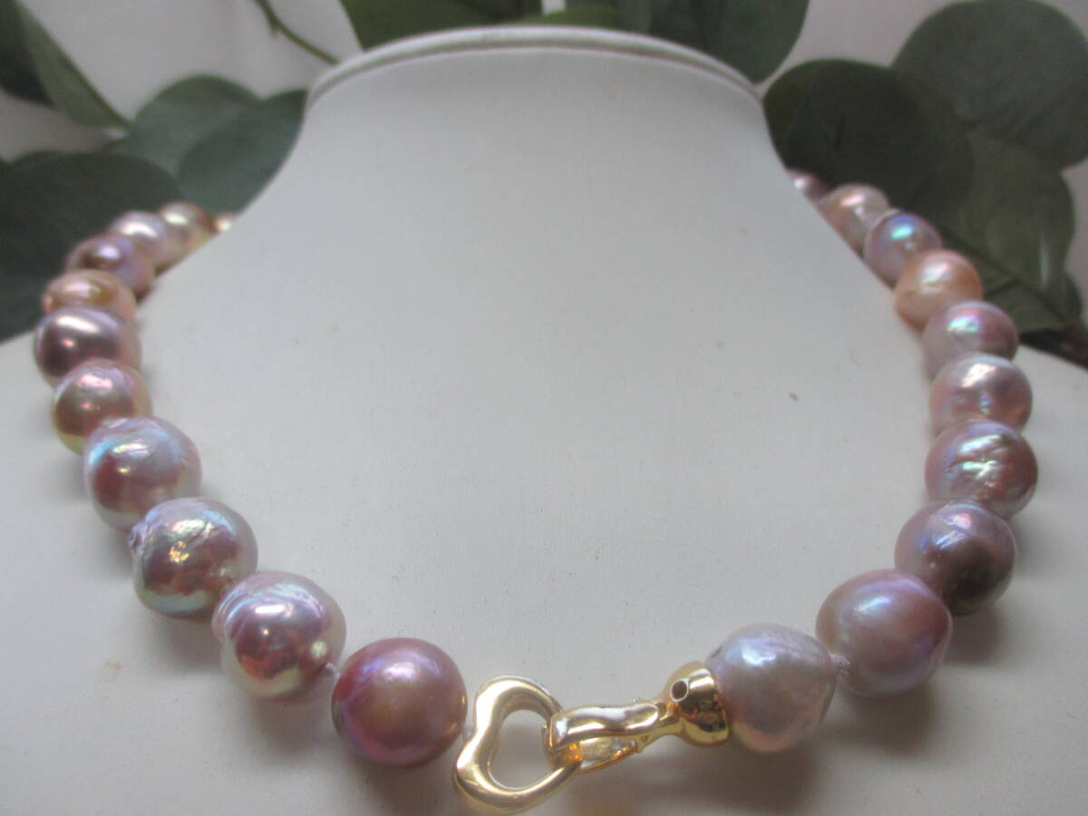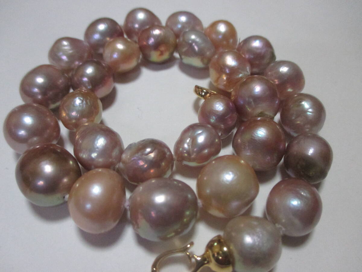 新品 南洋バロックほぼラウンド系美しいお色ピンクパープル系ネックレス♪魅力あるパールです♪シャインな輝き♪