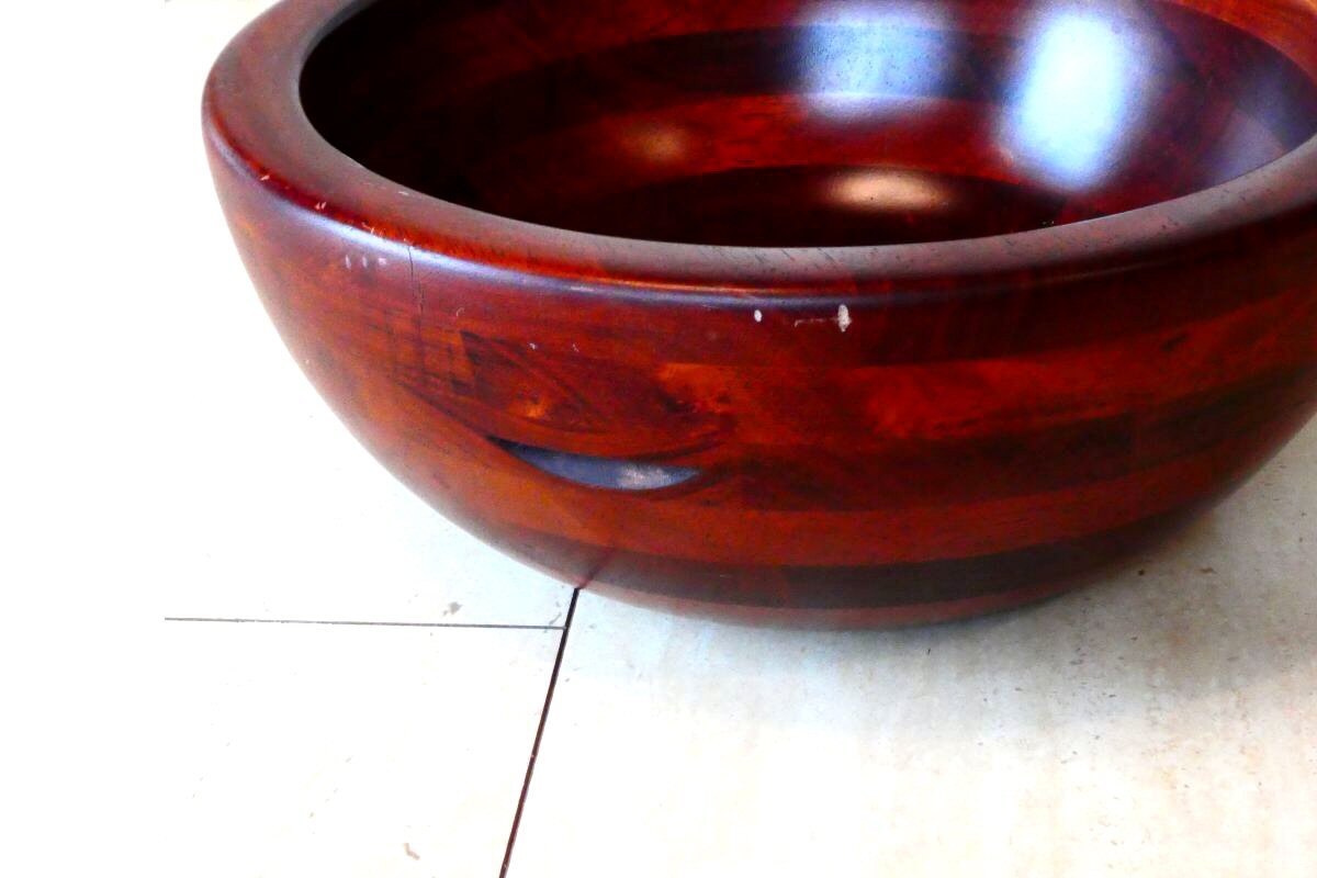 Й★惣菜くり鉢★中★深型★木製★直径36㎝★サラダボウル★USED★