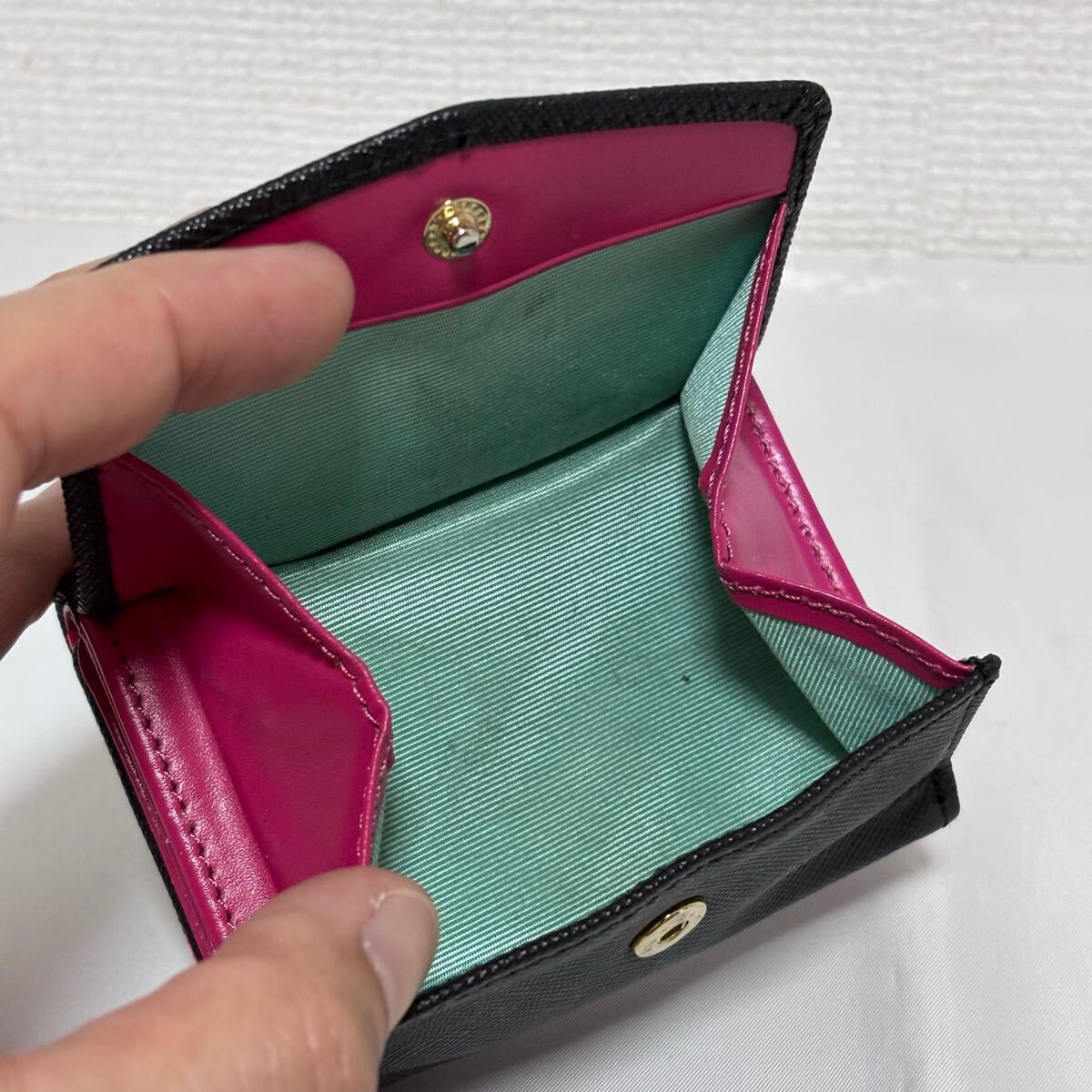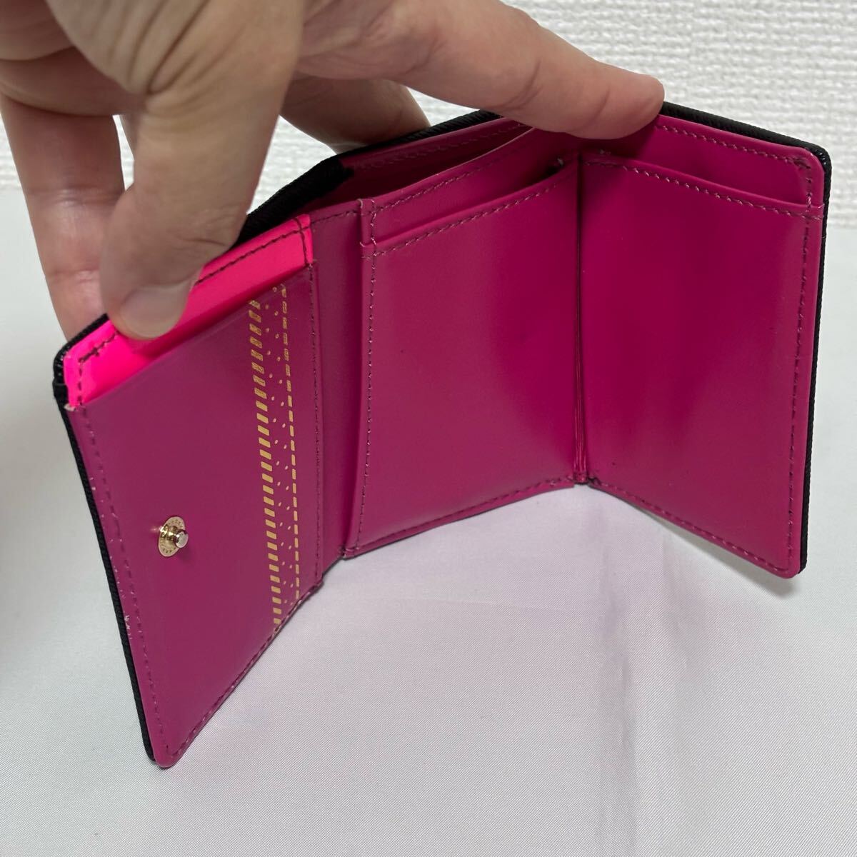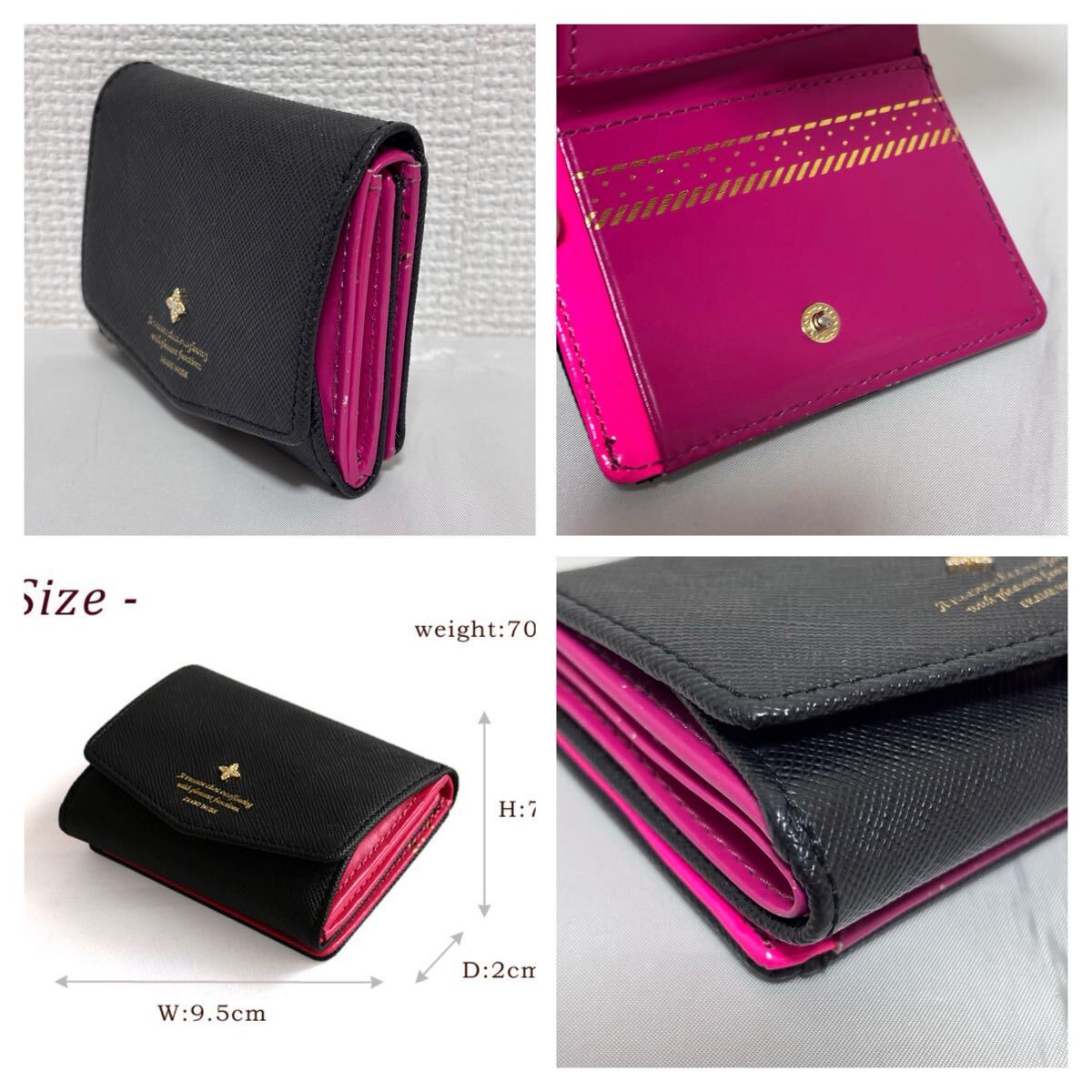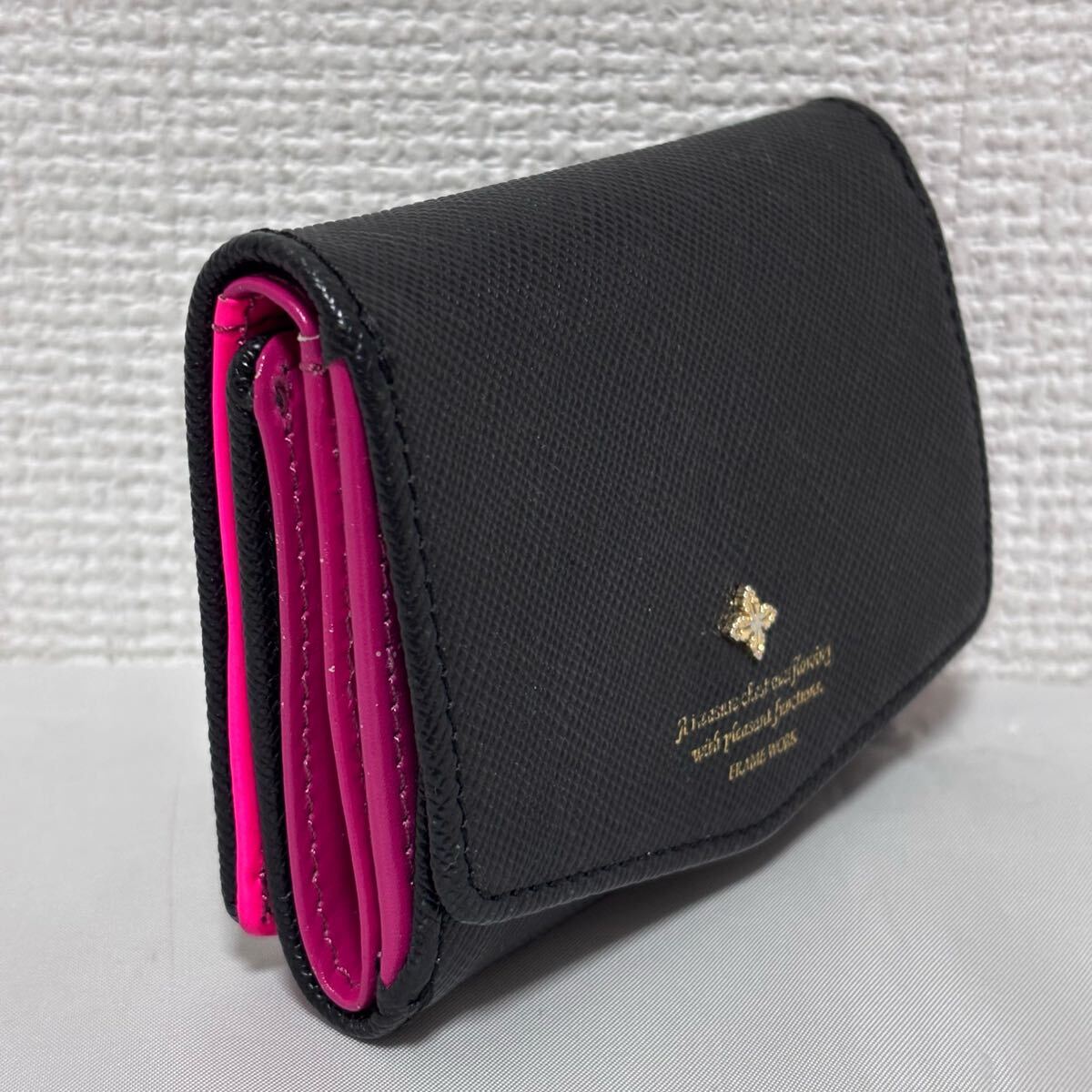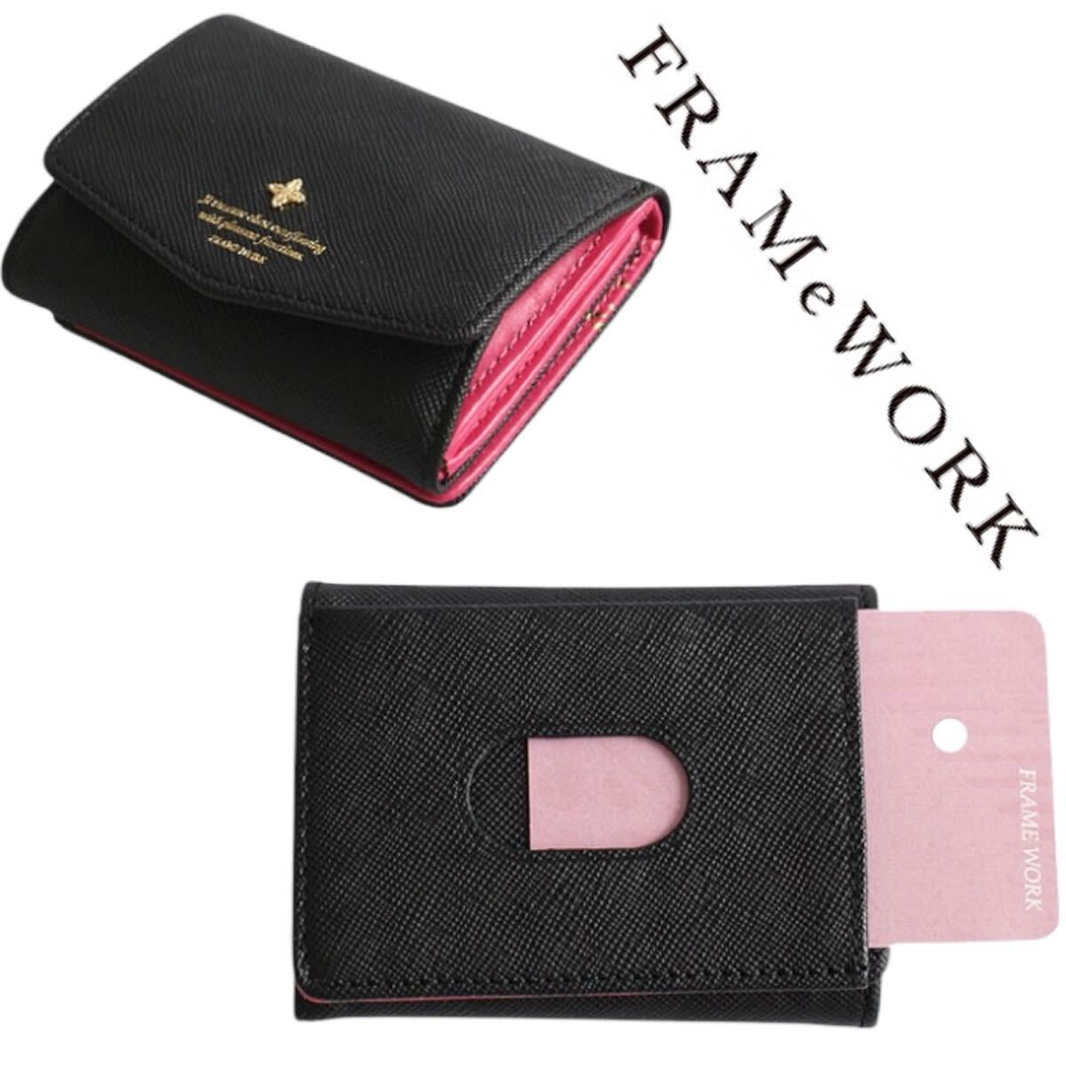こちらは、良品■フレームワーク■牛革 レザー アンサンブル 小銭入れ付き 三つ折り財布 黒 ブラック ピンク コンパクト FRAME WORK